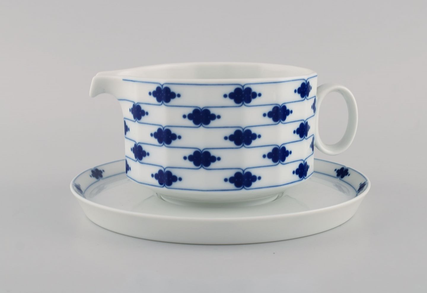 Tapio Wirkkala for Rosenthal. Corinth butter jug on saucer in blue painted porcelain. Modernist Finnish design. Dated 1979-80.