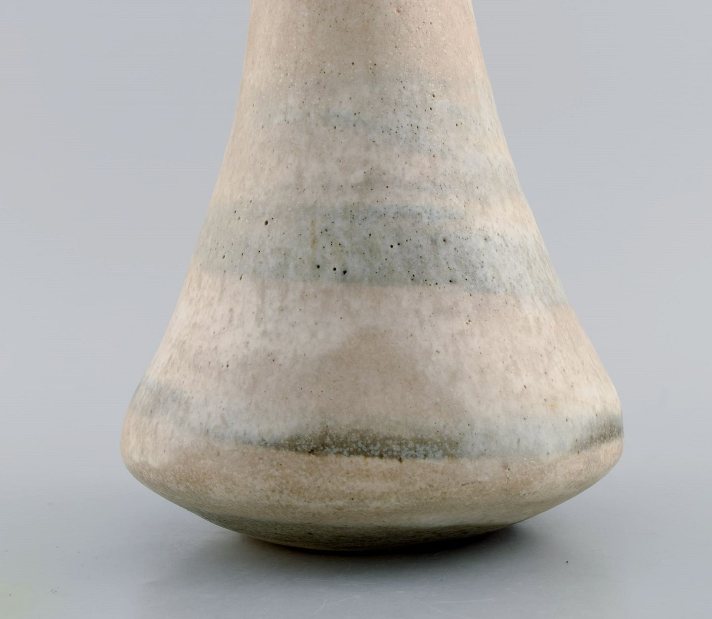 Lucie Rie (f. 1902, d. 1995), østrigsk-født britisk keramiker. Stor modernistisk unika vase i glaseret stentøj. Smuk glasur i sand nuancer. Eget værksted, ca. 1970.