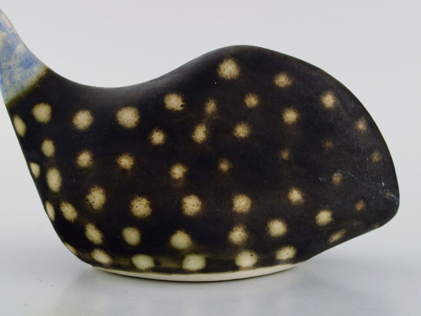 Sydafrikansk studio keramiker. Unika fugl i håndmalet glaseret keramik. Sent 1900-tallet. Måler: 19,5 x 12,5 cm. I flot stand.