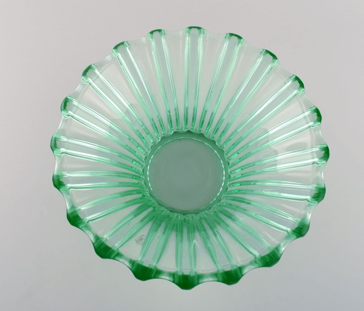 Pierre Gire (1901-1984), aka Pierre d'Avesn. Art deco skål i grønt mundblæst kunstglas. 1940'erne.