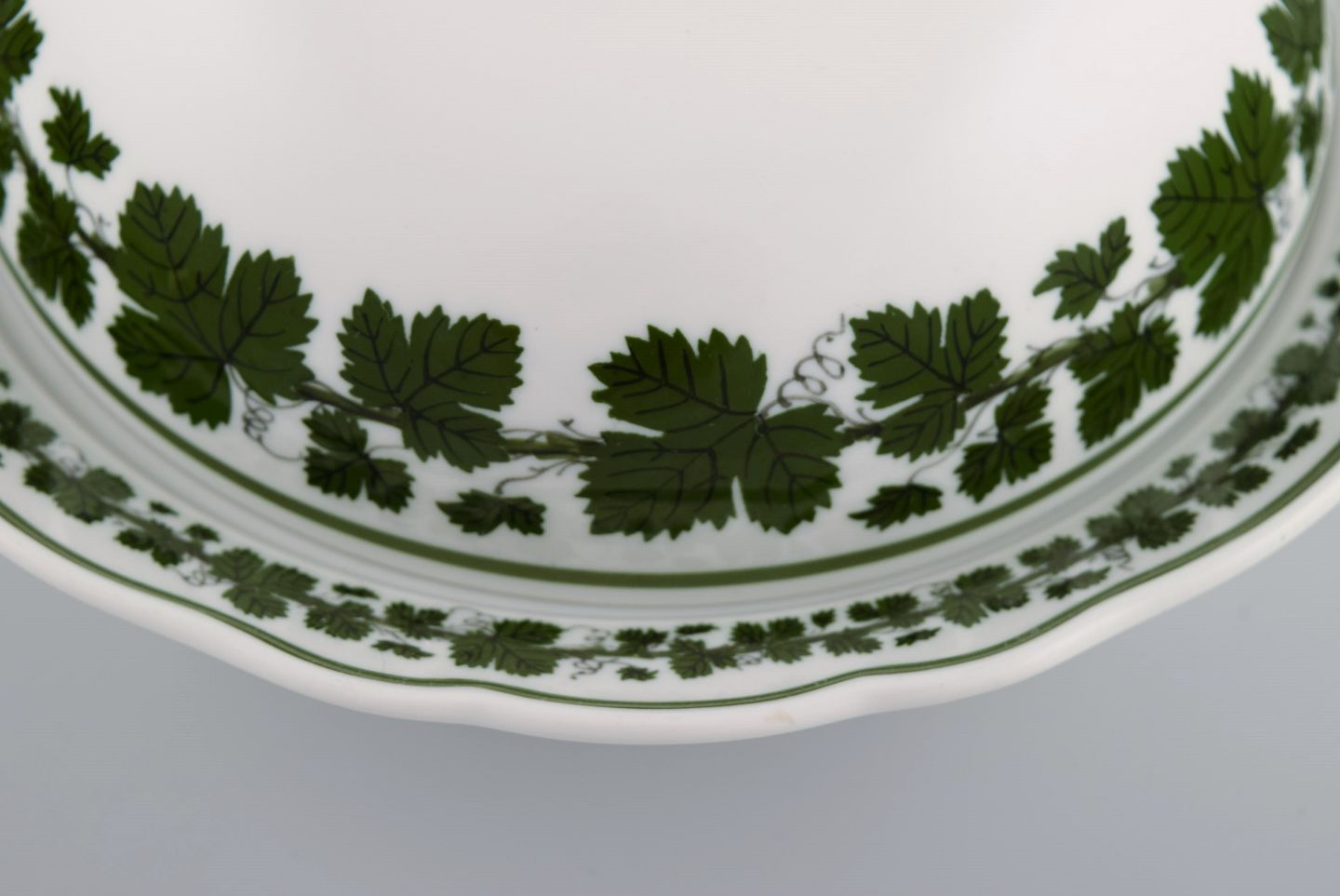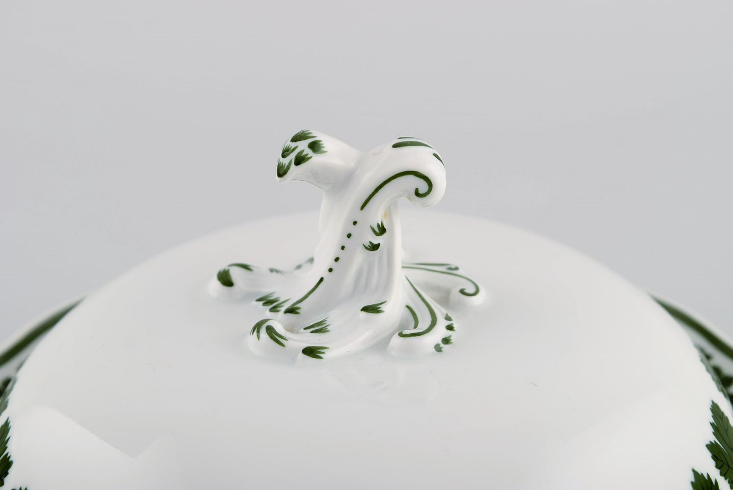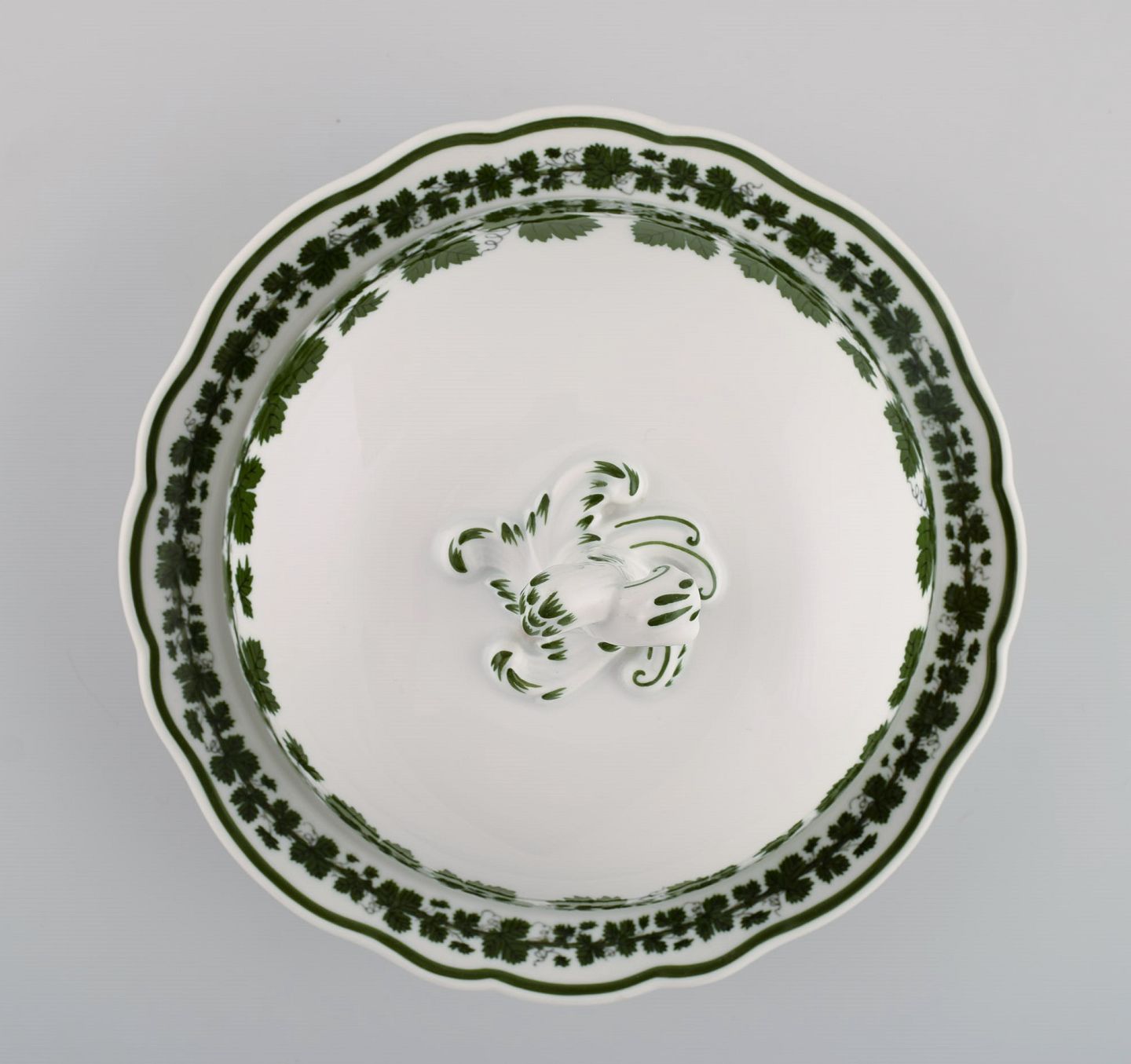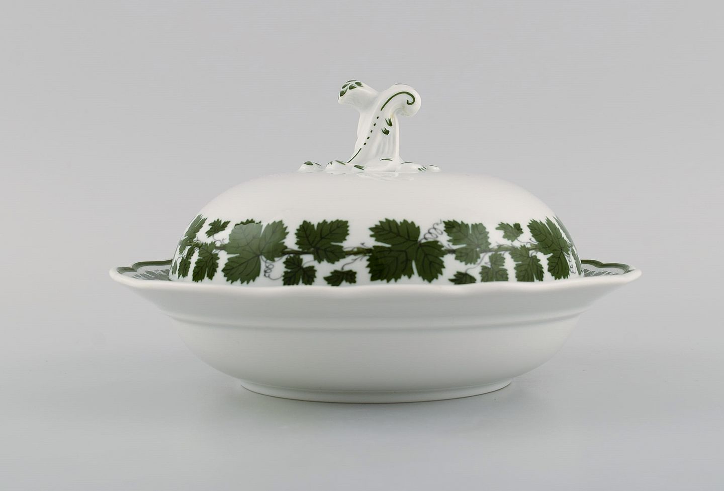Meissen Green Ivy Vine Leaf lidded tureen in hand-painted porcelain. 20th century. Measures: 18.5 x 10.5 cm. In excellent condition. Stamped. 1st factory quality.