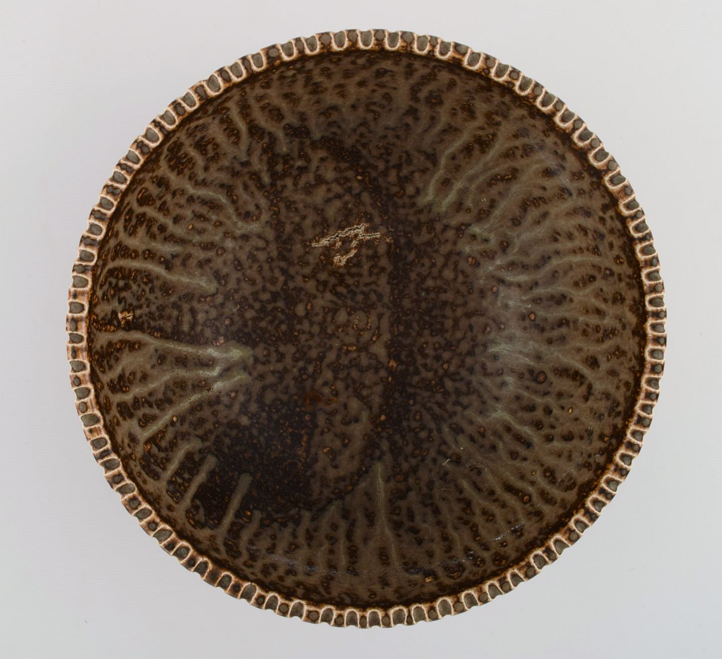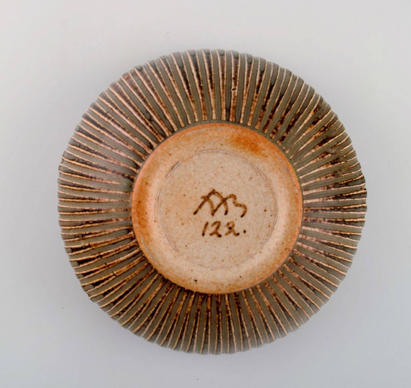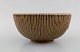 Arne Bang (1901-1983), Denmark. Bowl in glazed ceramics modeled with grooved body. Model number 122. Beautiful glaze in light brown shades. 1940s / 50s.