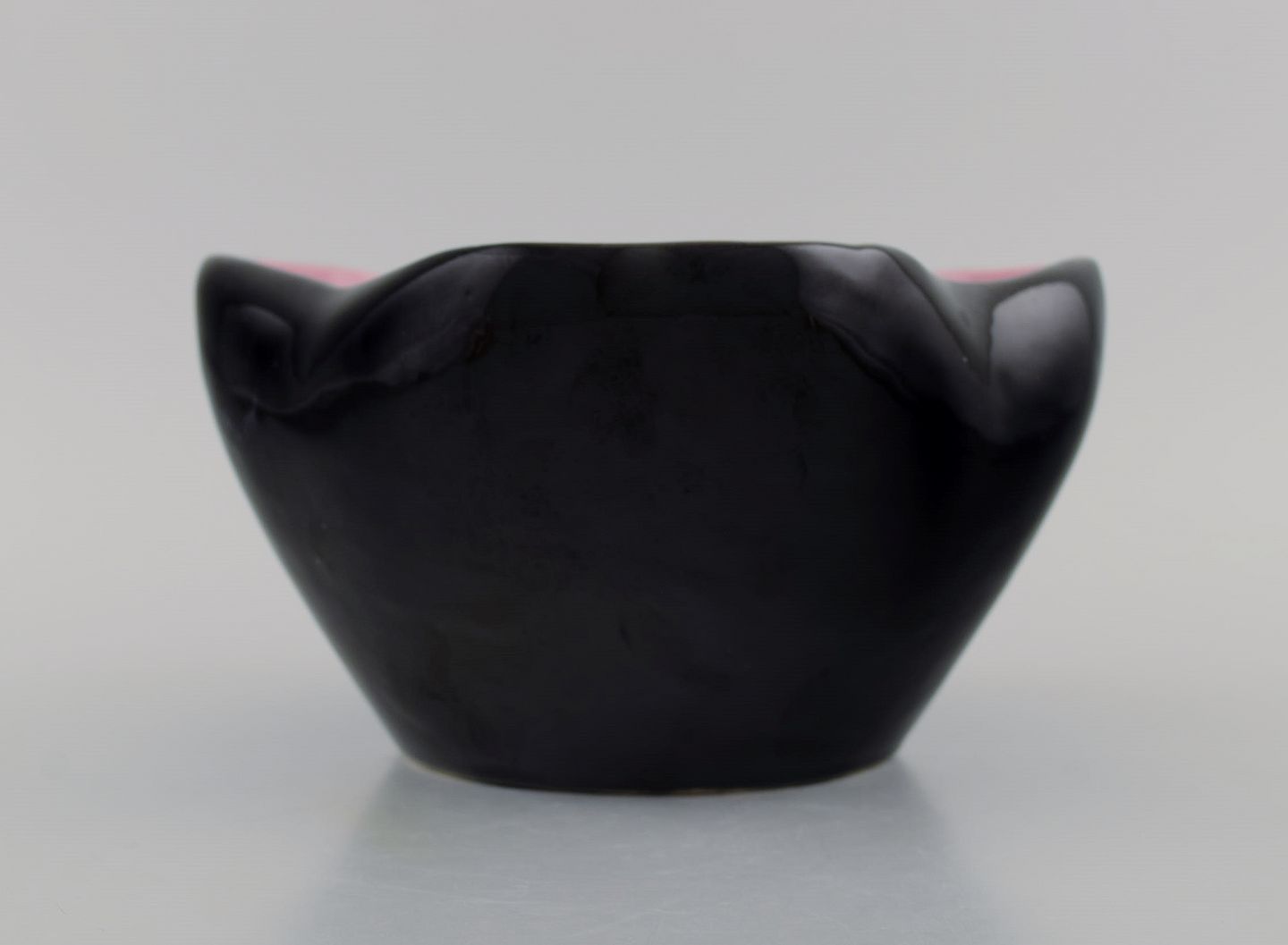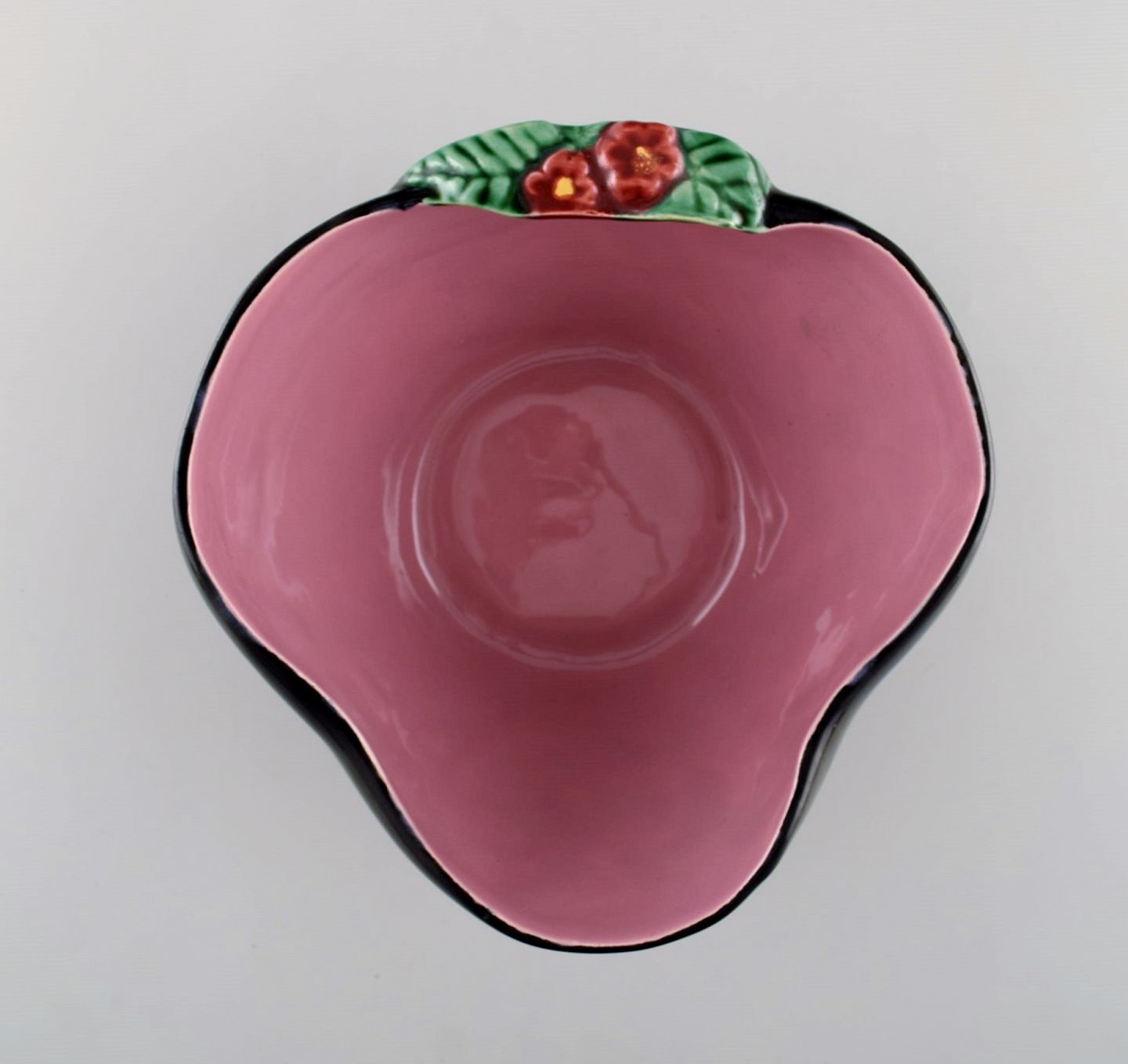 Fransk studiokeramiker. Skål i glaseret keramik modelleret med blomster. Lyserød indvendig glasur. Sent 1900-tallet. Måler: 22 x 11,5 cm. I flot stand. Signeret.