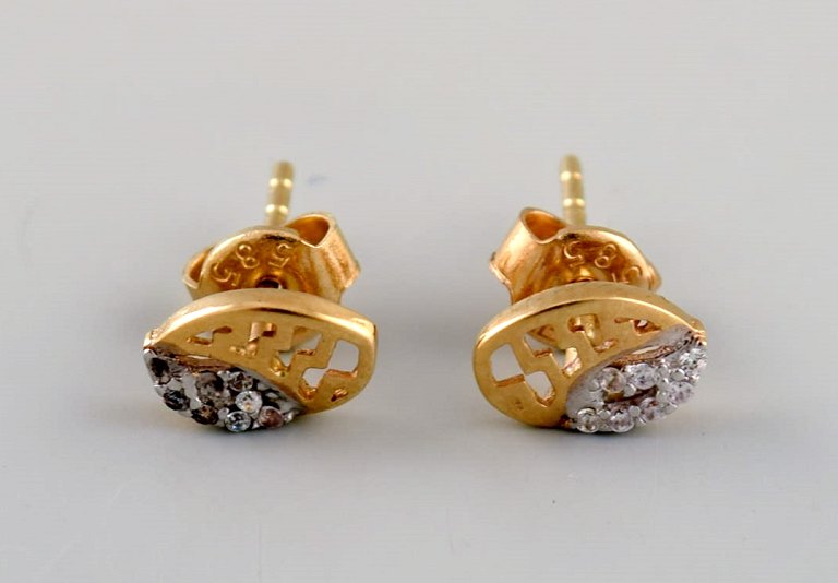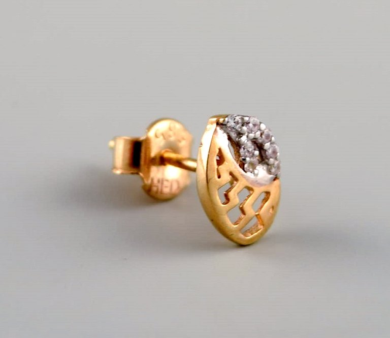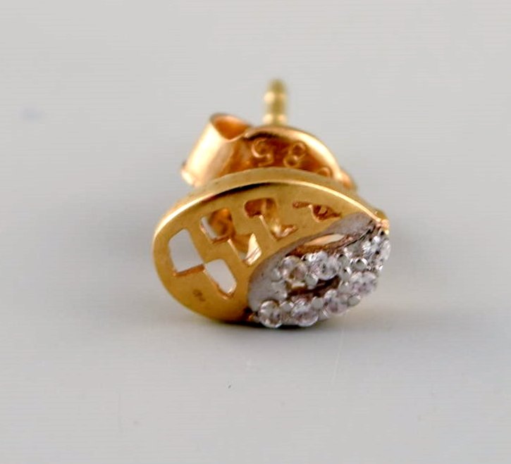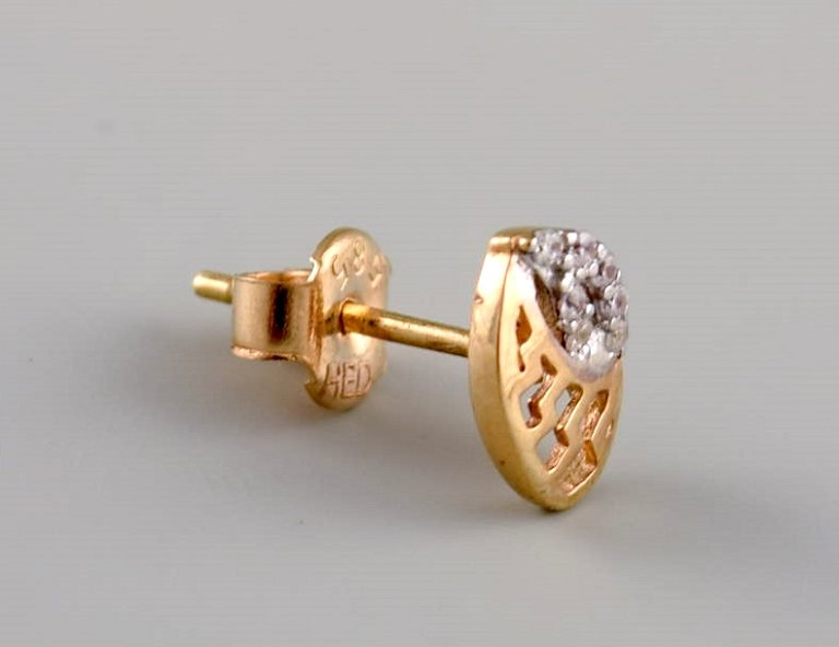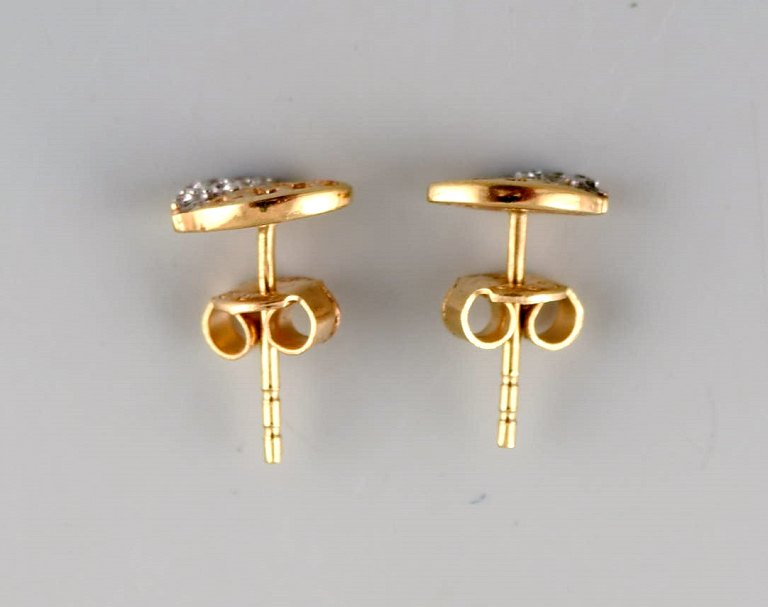 Danish jeweler. A pair of ear studs in 14 carat gold adorned with bright diamonds. Late 20th century. Measures: 9 x 6 mm. In excellent condition. Stamped.