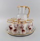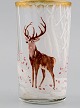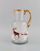 Legras Saint Denis. Russian beer service on serving tray in mouth-blown art glass with hand-painted red deer in winter landscape. France, ca. 1900.