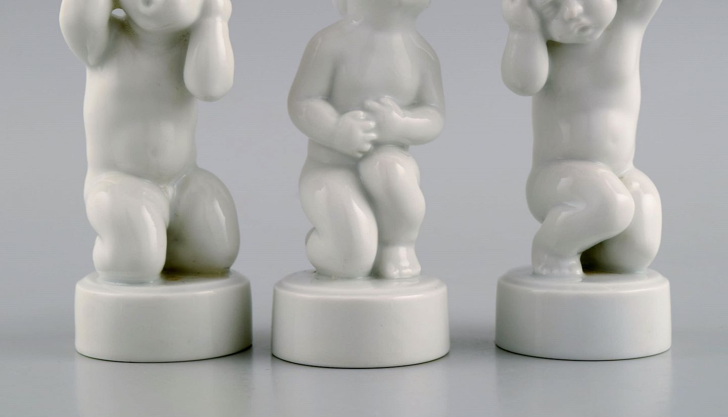 Svend Lindhart for Bing & Grøndahl. Tre blanc de chine figurer. Hovedpine, ørepine og mavepine. Midt 1900-tallet.