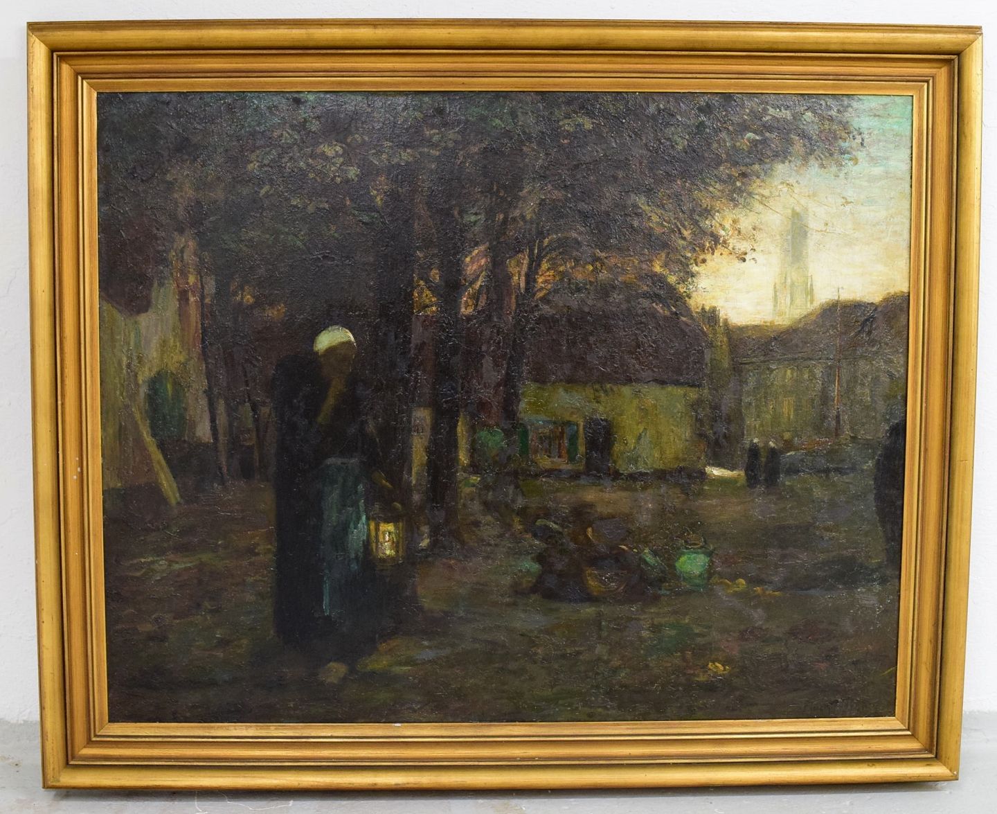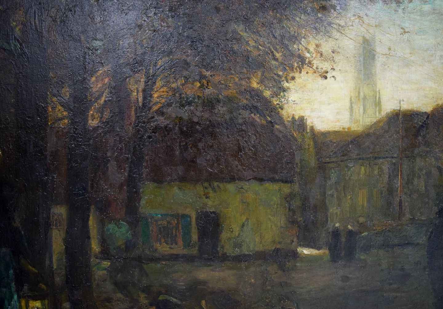 Flora Macdonald Reid (1860-1940), britisk kunstner. Olie på lærred. Bysceneri. Sent 1800-tallet.