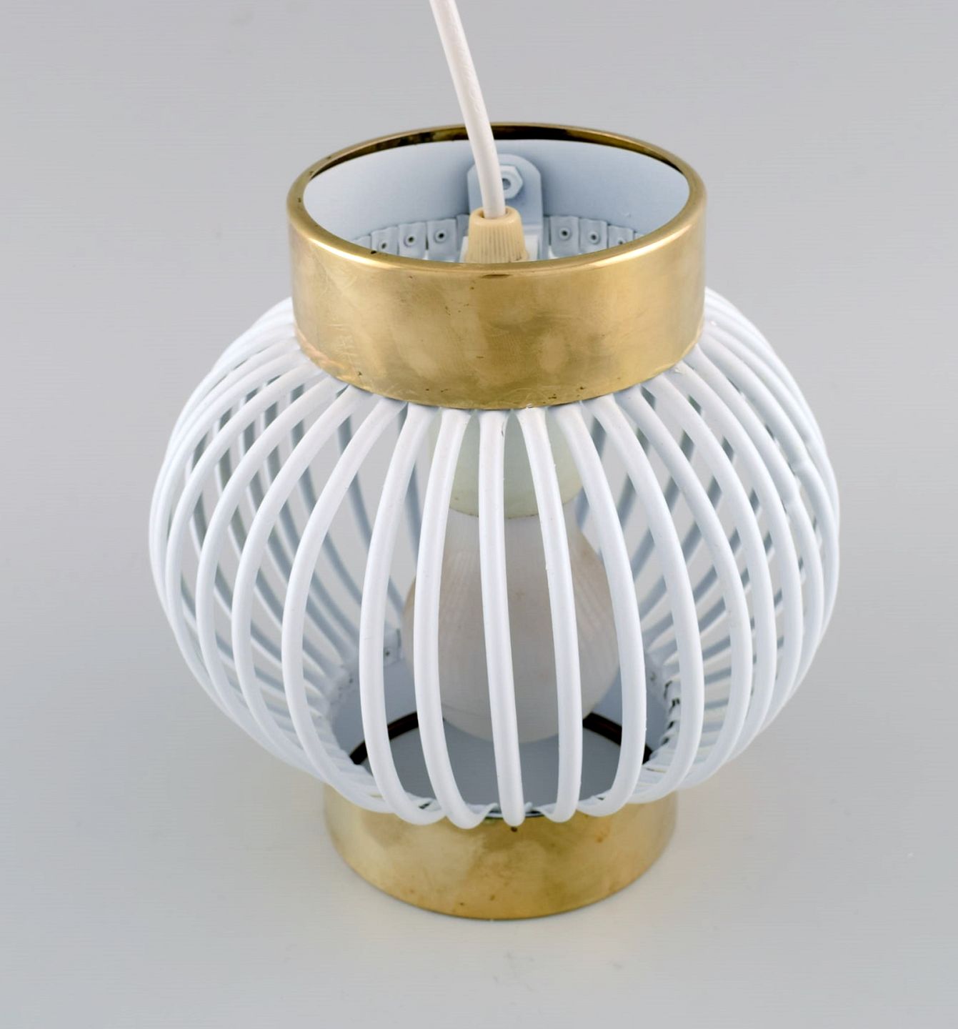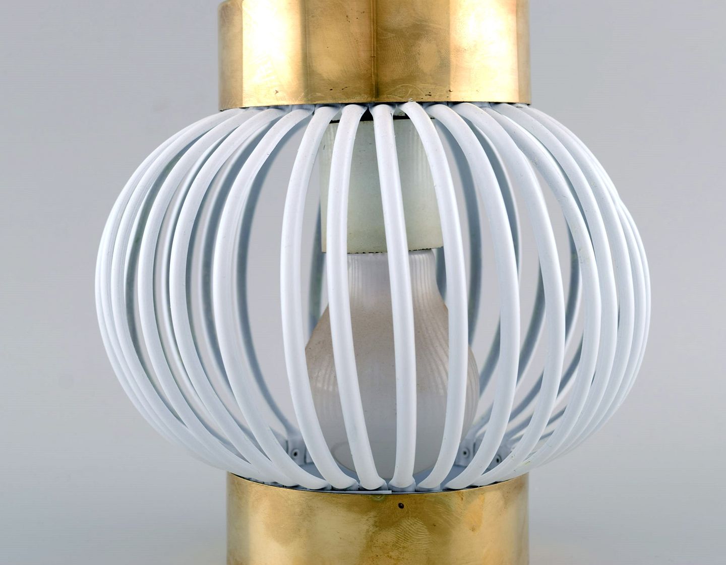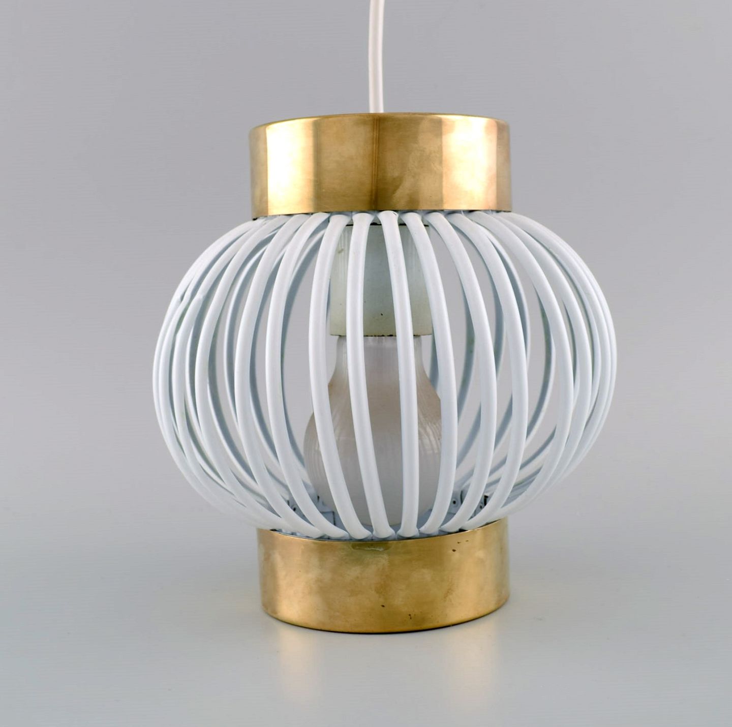 To designer loftslamper i messing og hvid plast. 1960/70'erne. Måler: 18 x 18 cm. I flot stand.