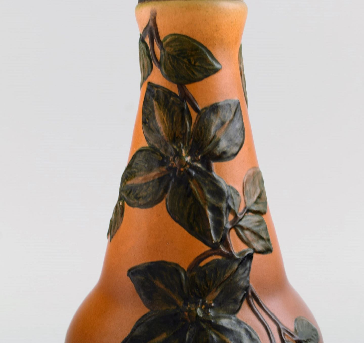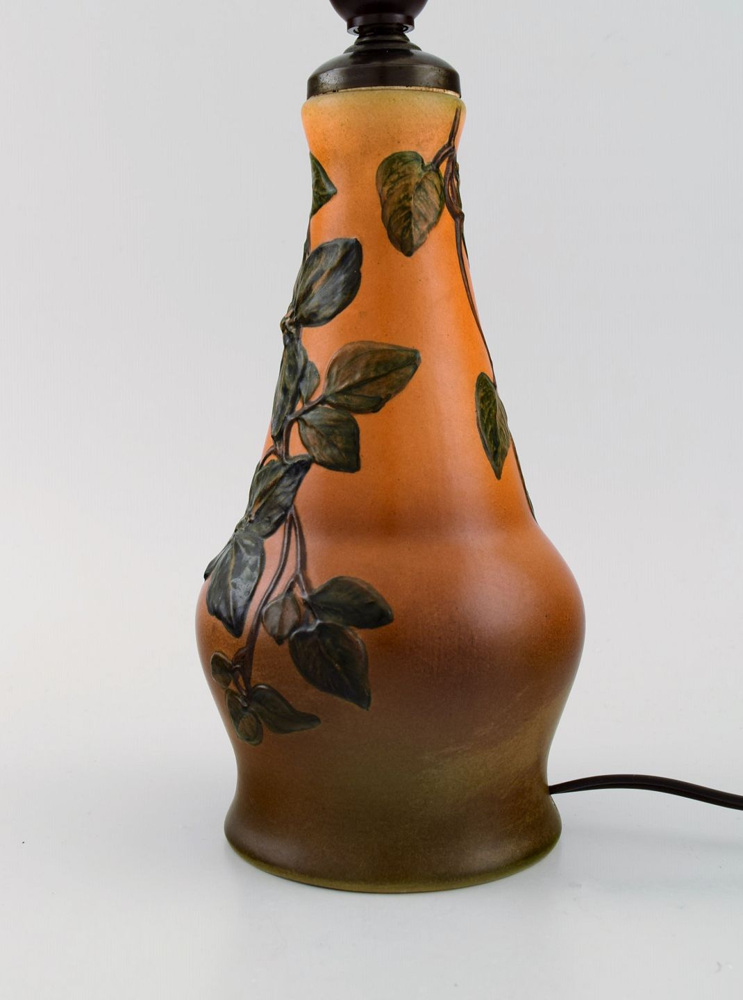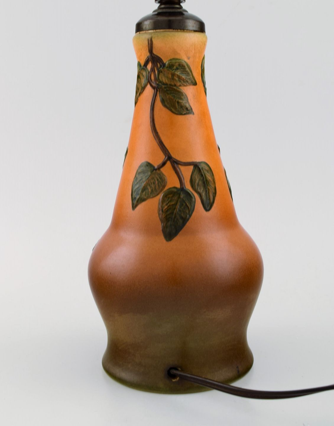 Ipsen's, Denmark. Table lamp in glazed ceramics with hand-painted foliage. Model number 95. 1940s. Measures: 22.5 x 12 cm (ex socket). In excellent condition. Stamped.