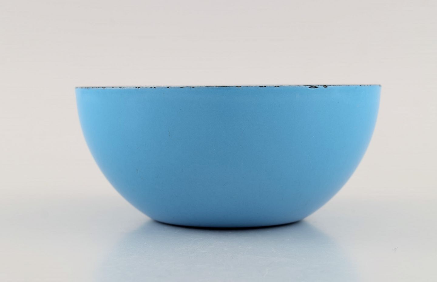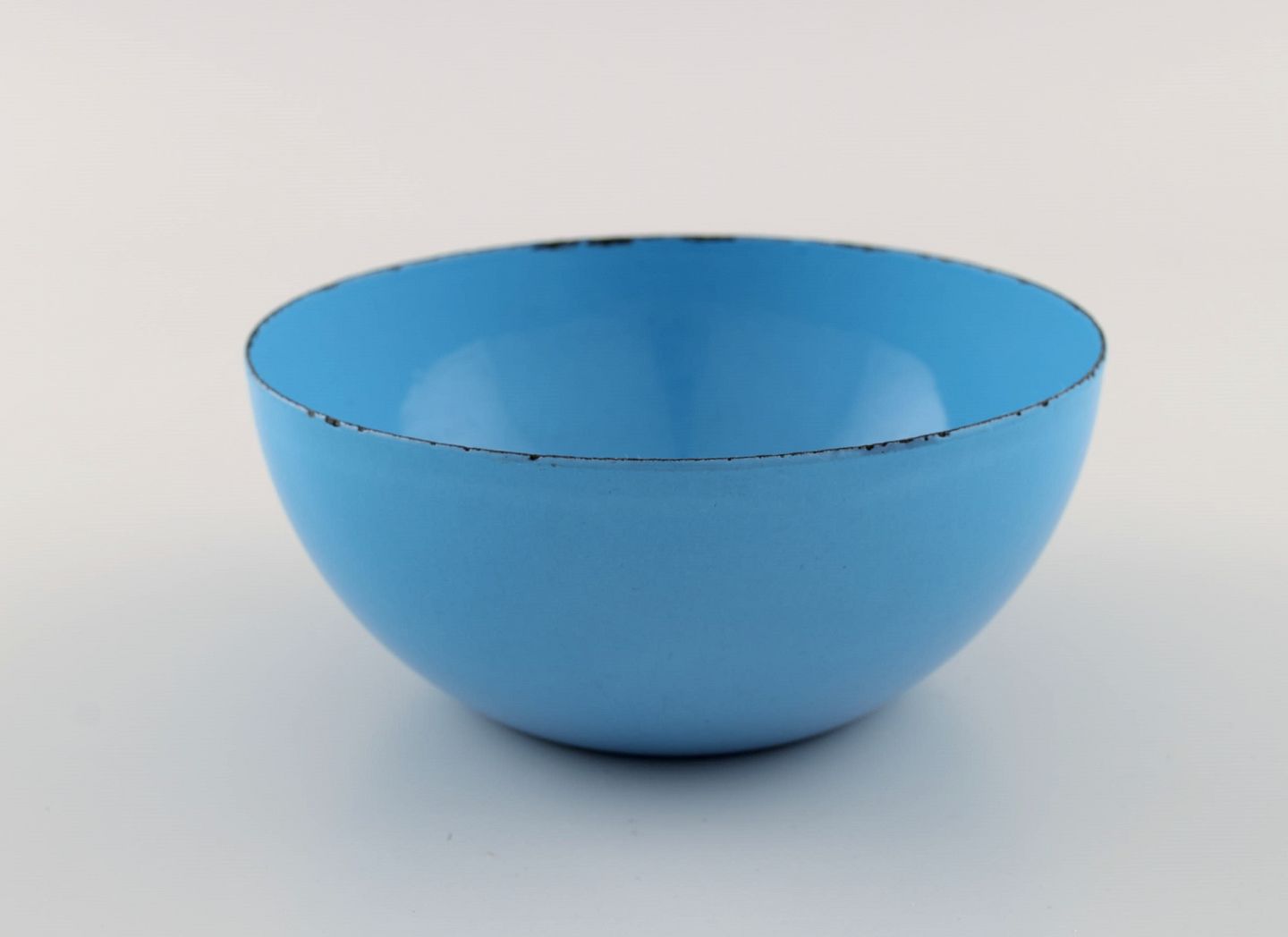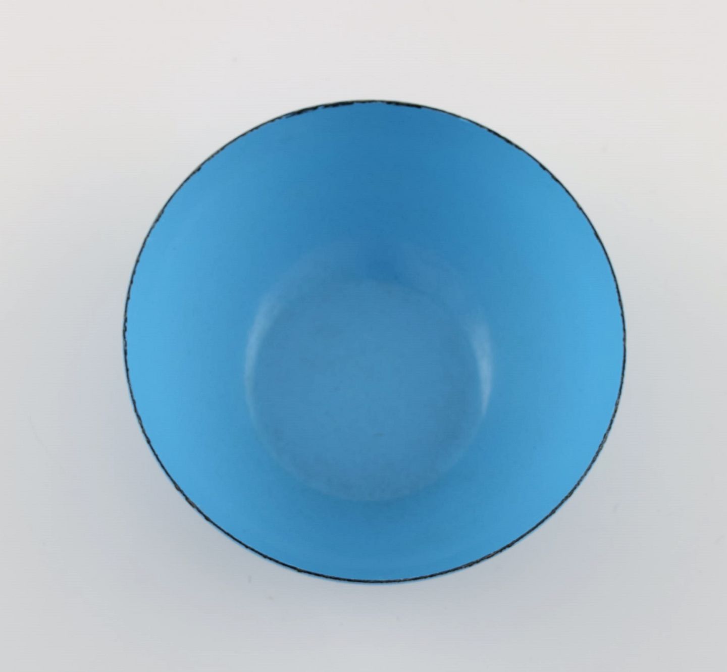 Kaj Franck (1911-1989) for Finel. Light blue bowl in enamelled metal. Finnish design, mid 20th century. Measures: 14 x 6 cm. In excellent condition. Minimal age-related wear. Stamped.