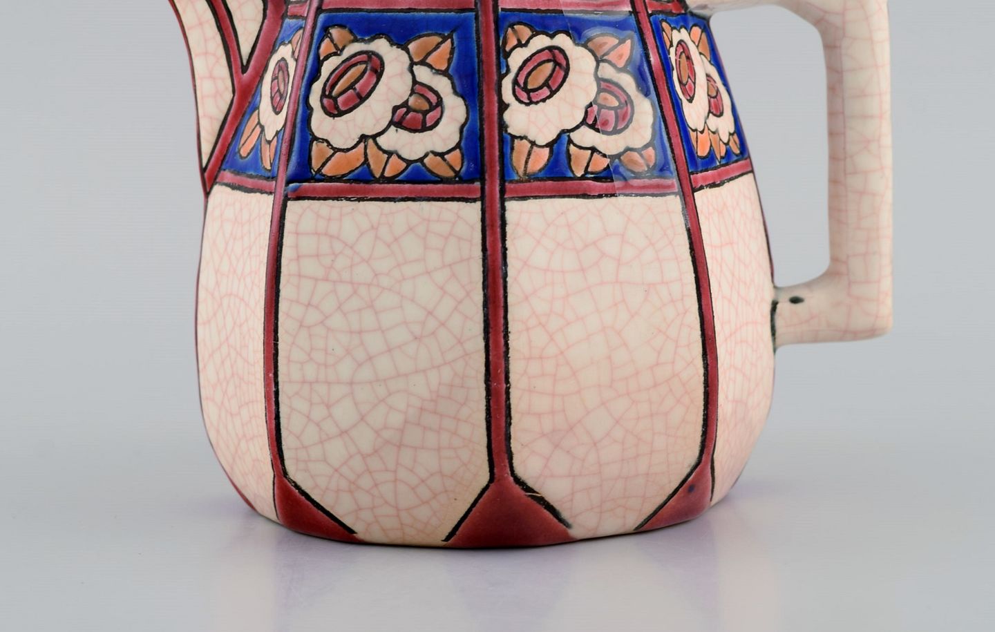 Longwy, Frankrig. Art deco tekande i glaseret stentøj med håndmalet blomsterdekoration. 1920/30'erne.