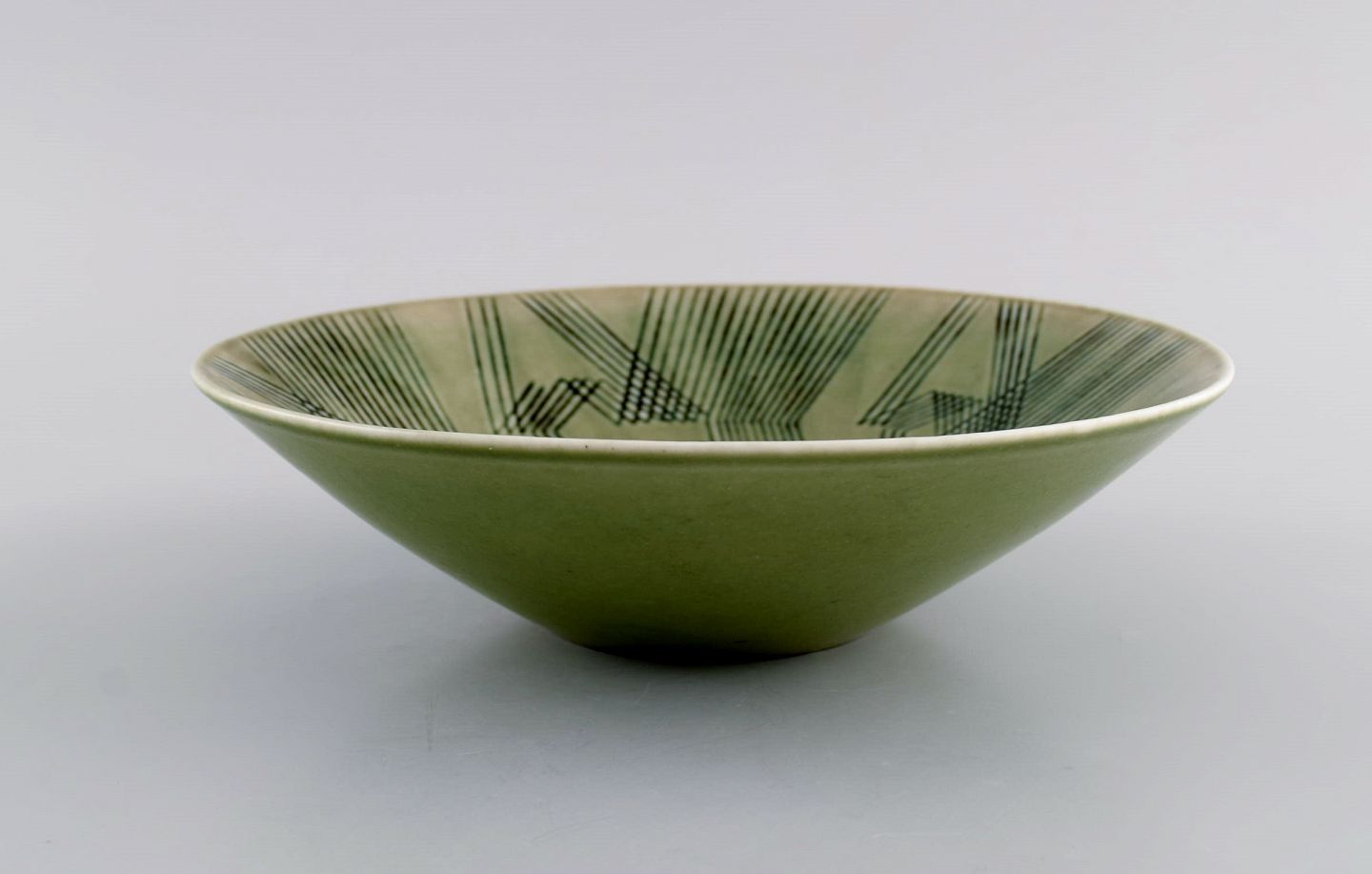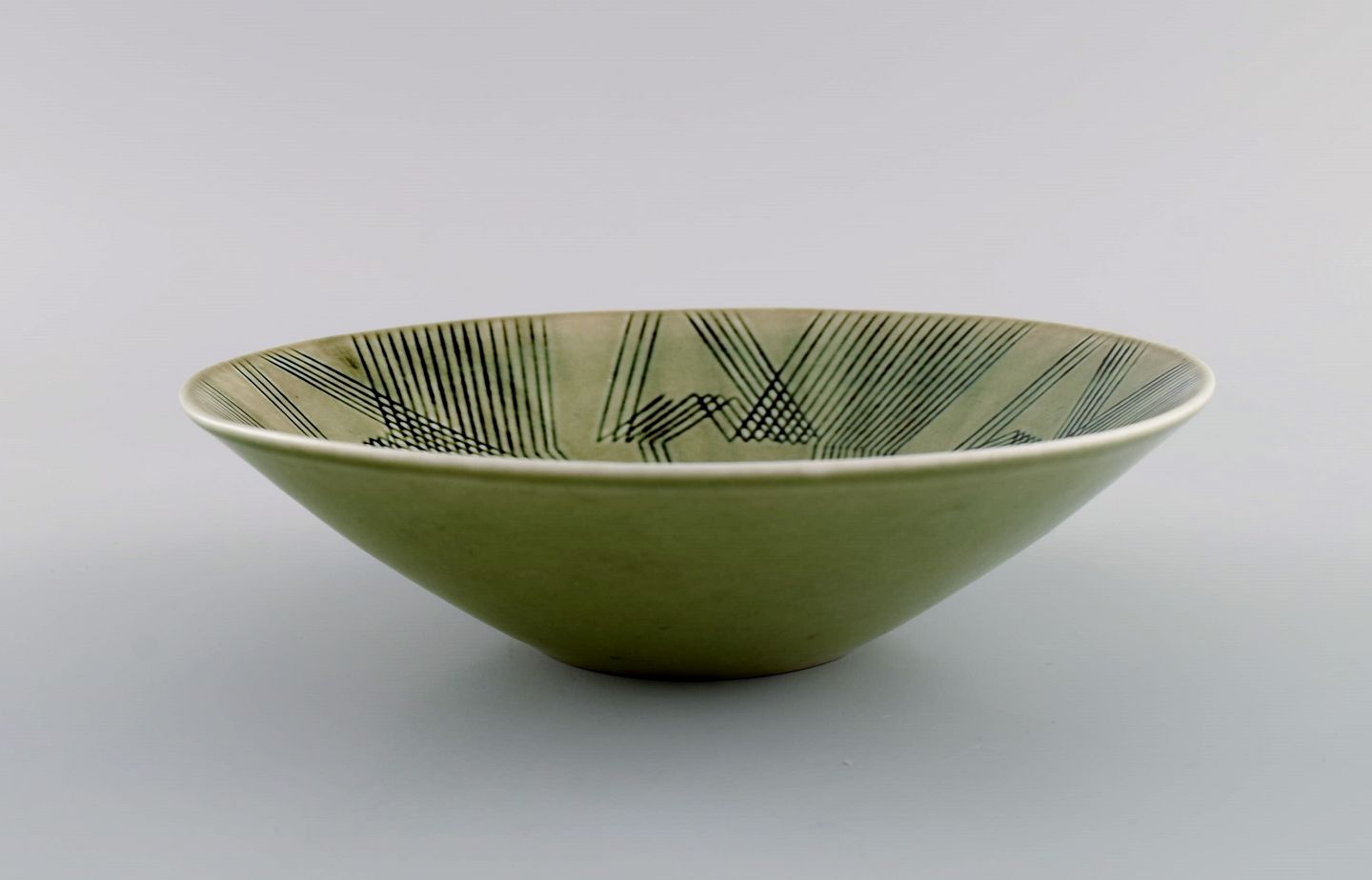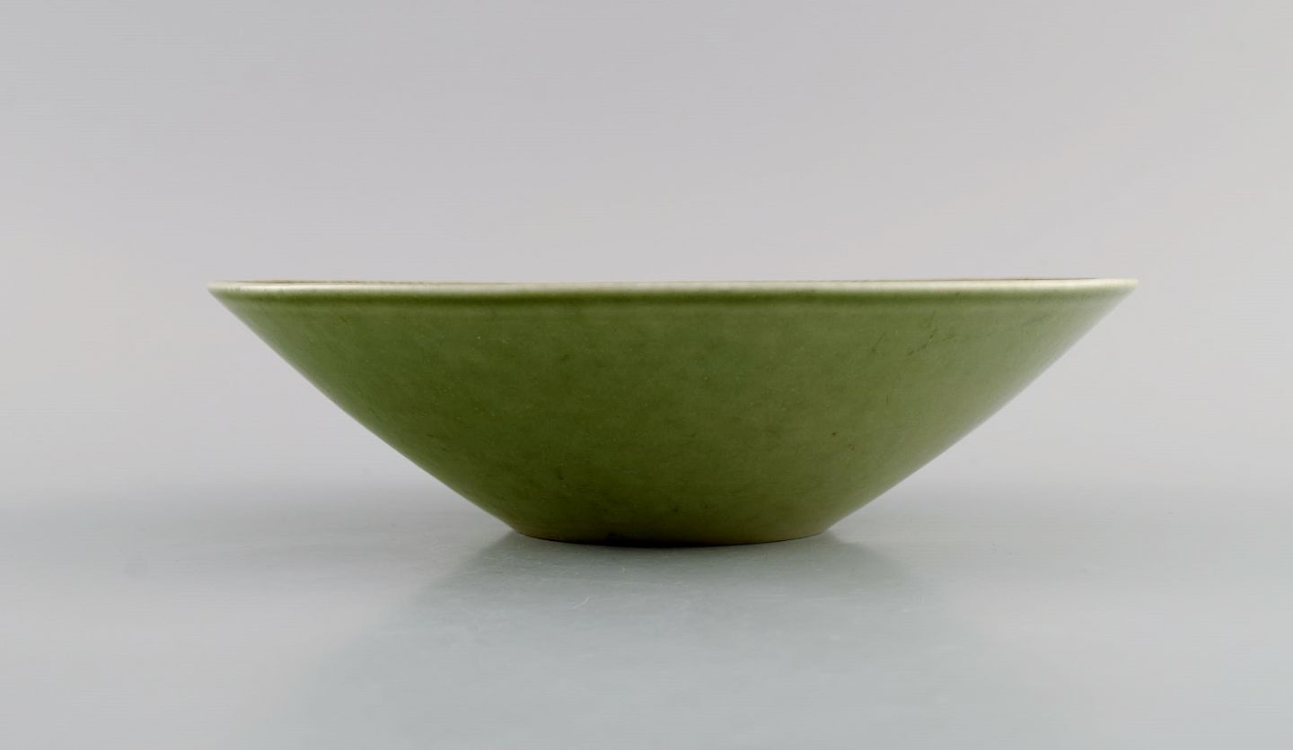 Carl Harry Stålhane (1920-1990) for Rörstrand. Skål i glaseret keramik med kubistisk dekoration. Midt 1900-tallet. Måler: 19,3 x 5,5 cm. I flot stand. Stemplet. 1. Sortering.