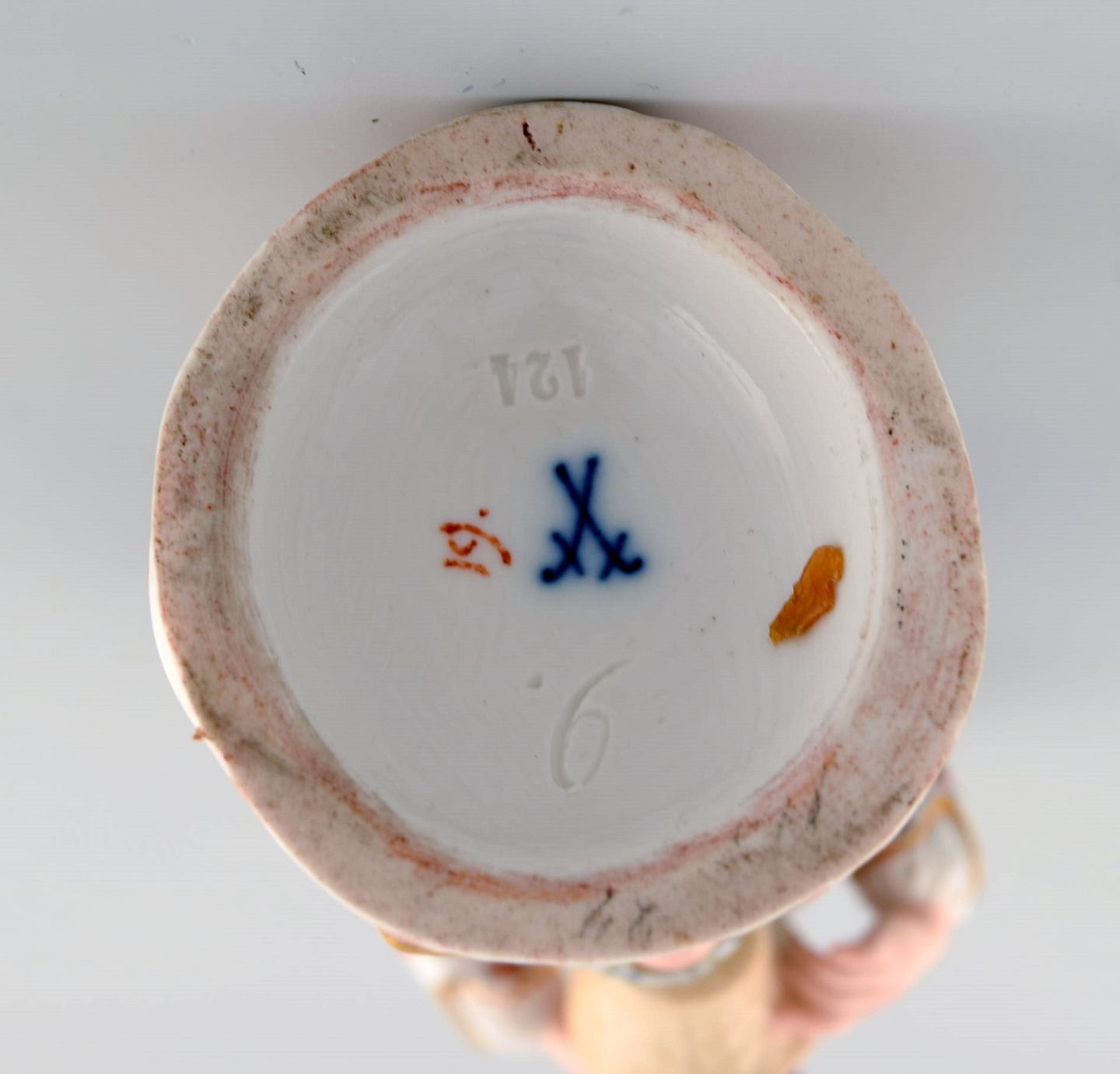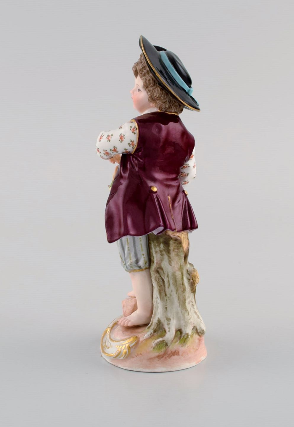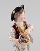 Antik Meissen figur i håndmalet porcelæn. Dreng med blomsterkurv. 1800-tallet.