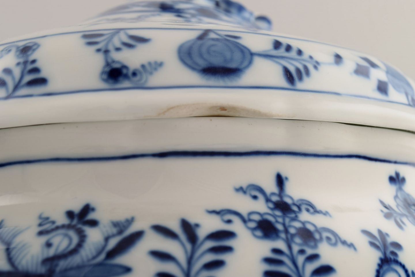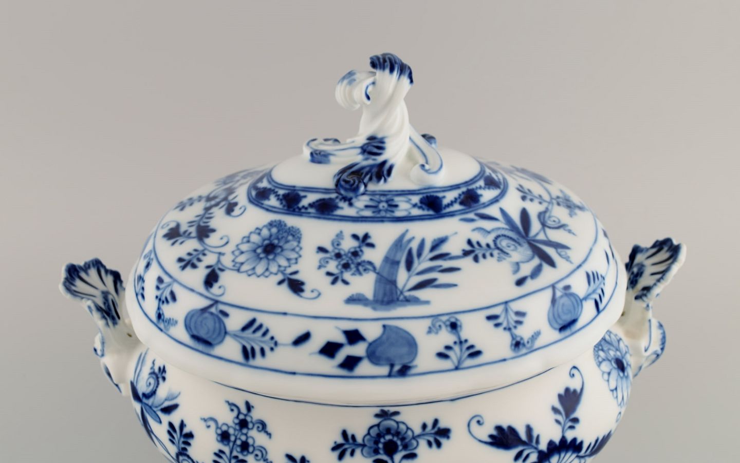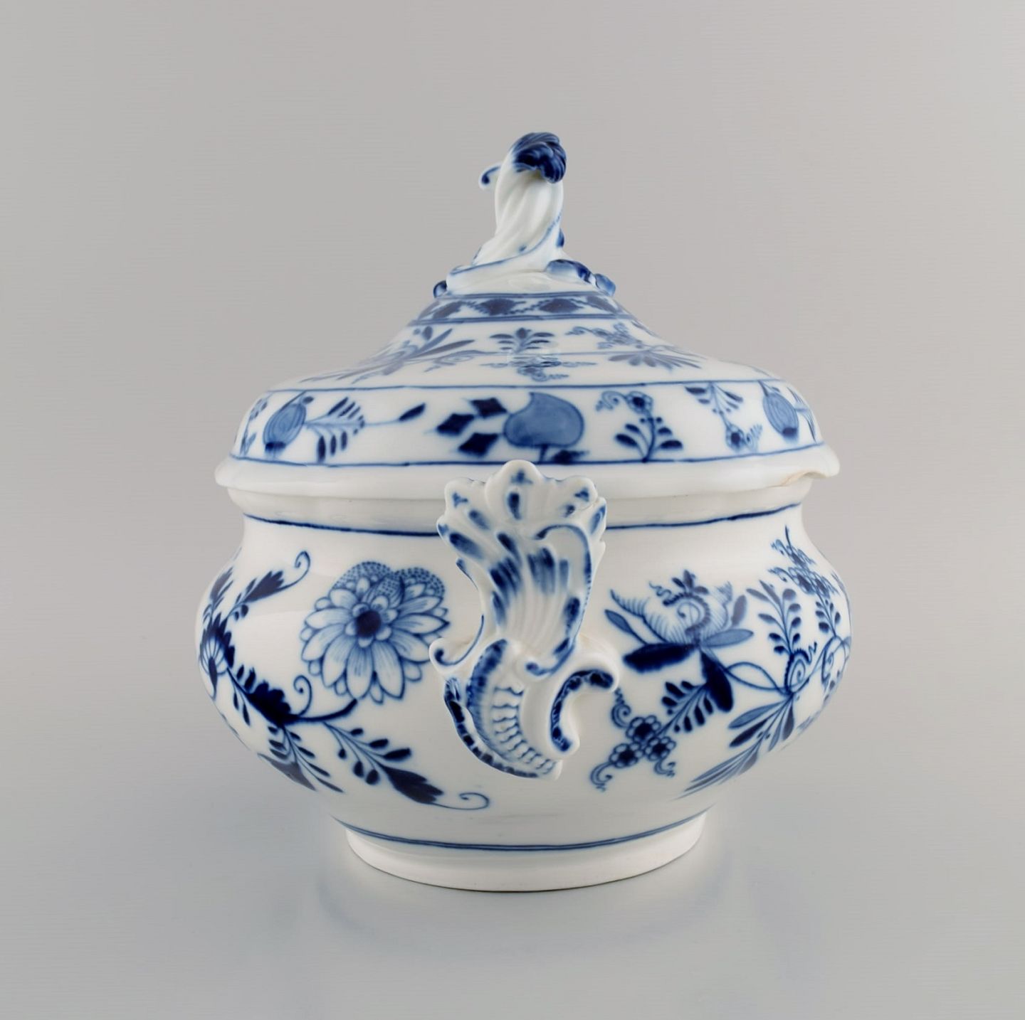Large antique Meissen Blue Onion soup tureen in hand-painted porcelain. Late 19th century.