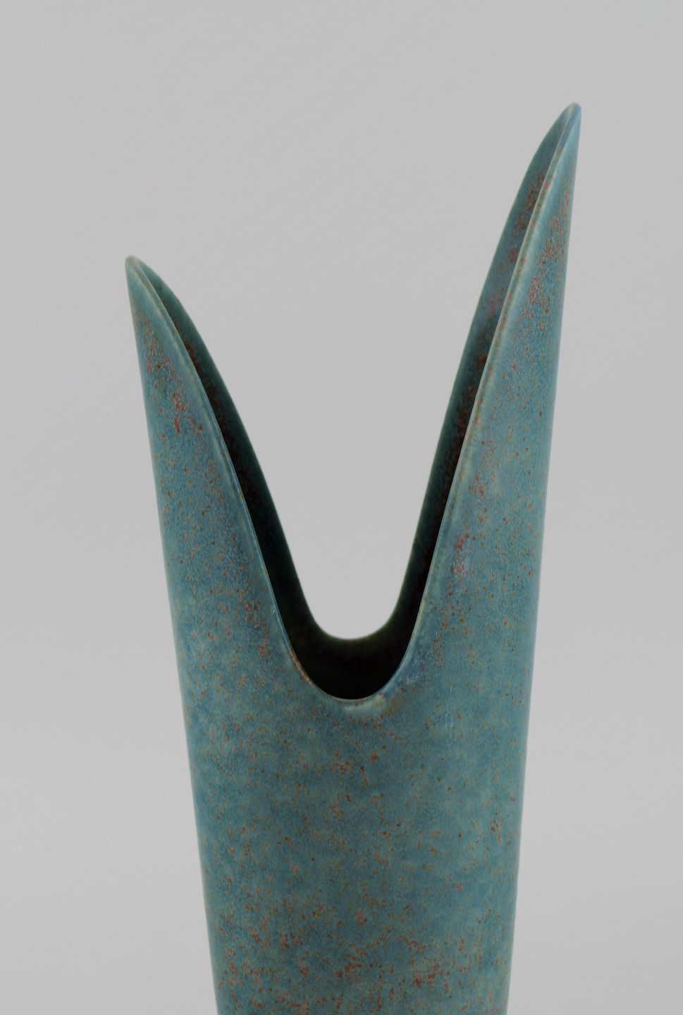 Gunnar Nylund for Rörstrand. Sjælden vase i glaseret keramik. Smuk glasur i blågrønne nuancer. Midt 1900-tallet. Måler: 30,5 x 13 cm. I flot stand. Signeret. 2. Sortering.