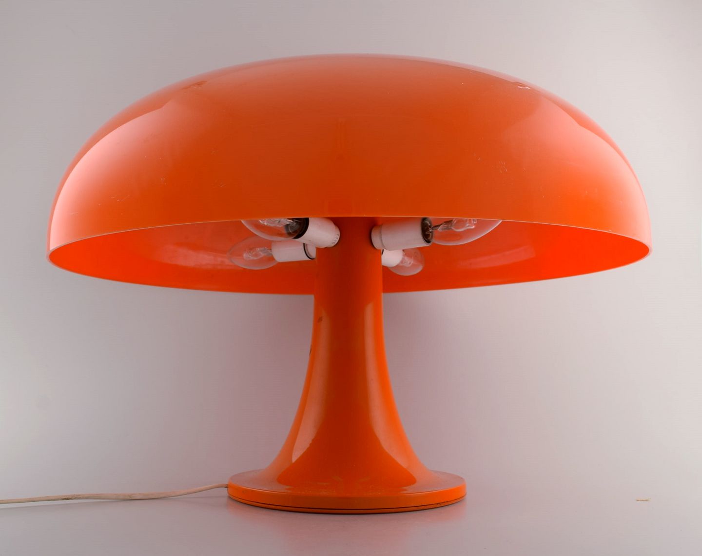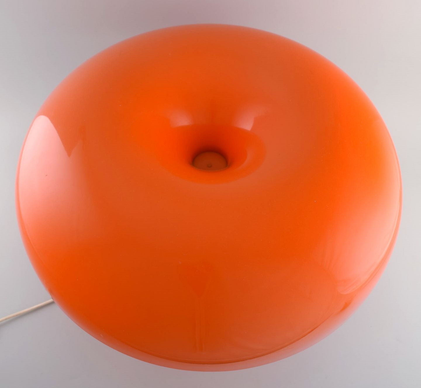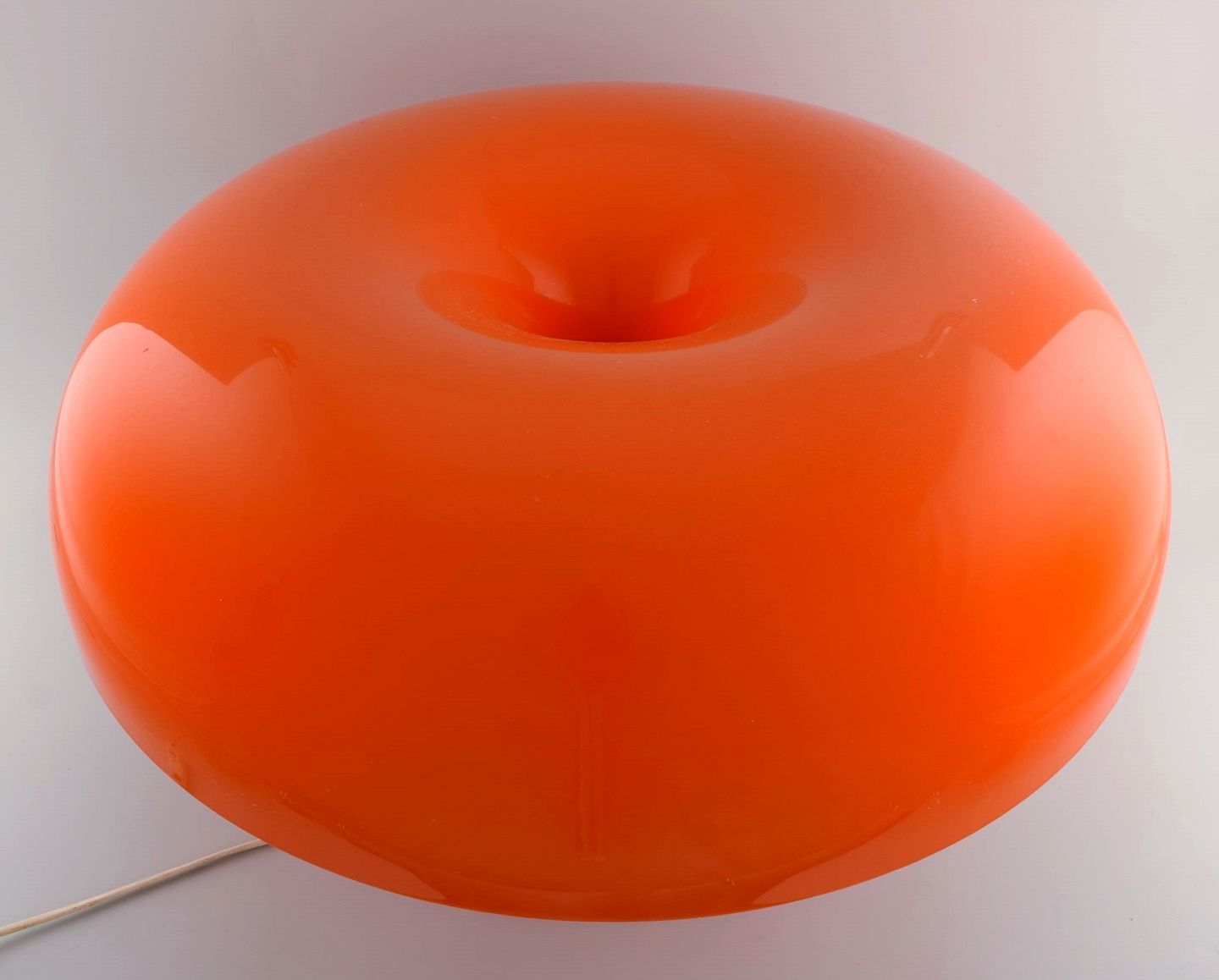 Giancarlo Mattioli for Artemide. Stor orange Nesso bordlampe. Italiensk design, 1970'erne. Måler: 54 x 35 cm. I flot stand. Stemplet. Patent pending. Materiale: Polycarbonat.
