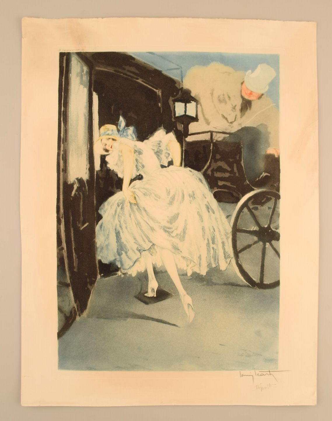 Louis Icart (1888-1950). Radering på papir. "Départ ". Ca. 1920. Lysmål: 42 x 30 cm. Totalmål: 52 x 40 cm. Signeret med blyant. I flot stand.