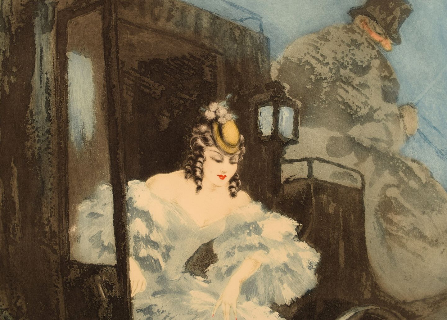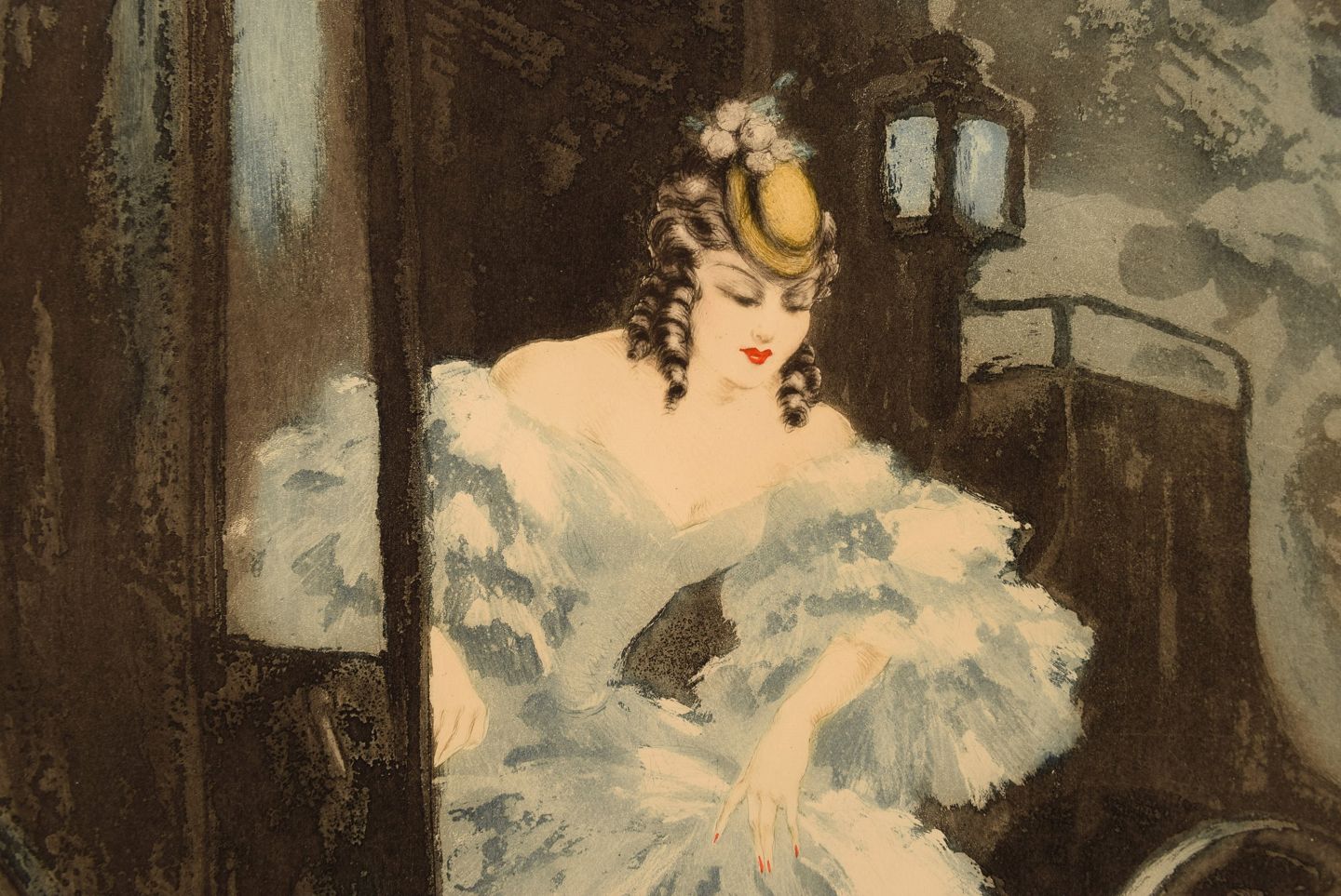 Louis Icart (1888-1950). Etching on paper. "Arrival". Approx. 1920 Visible dimensions: 42 x 30 cm. Total dimensions: 52 x 40 cm. Signed in pencil. In excellent condition.
