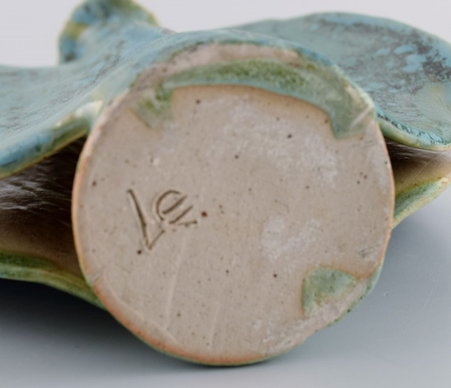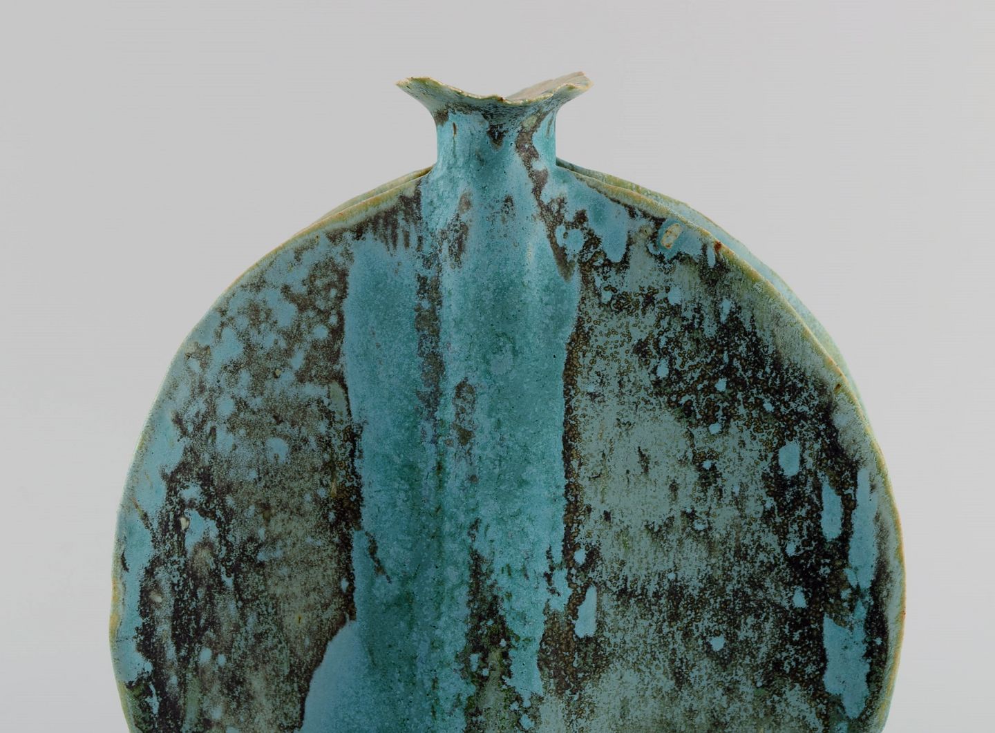 Europæisk studiokeramiker. Unika vase i glaseret stentøj. Smuk glasur i turkis og mørke nuancer. 1970'erne.