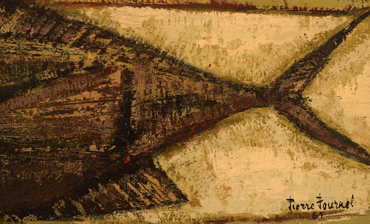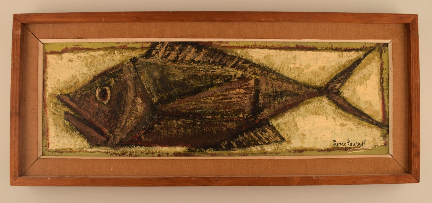 Pierre Fournel (f. 1924), Frankrig. Olie på plade. Fisk. Dateret 1961.