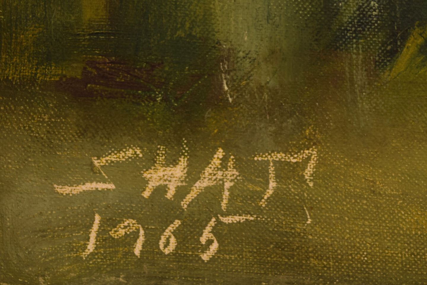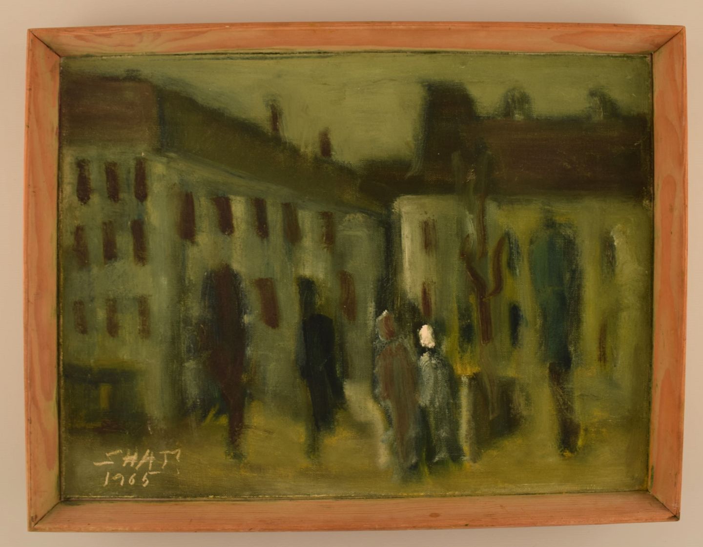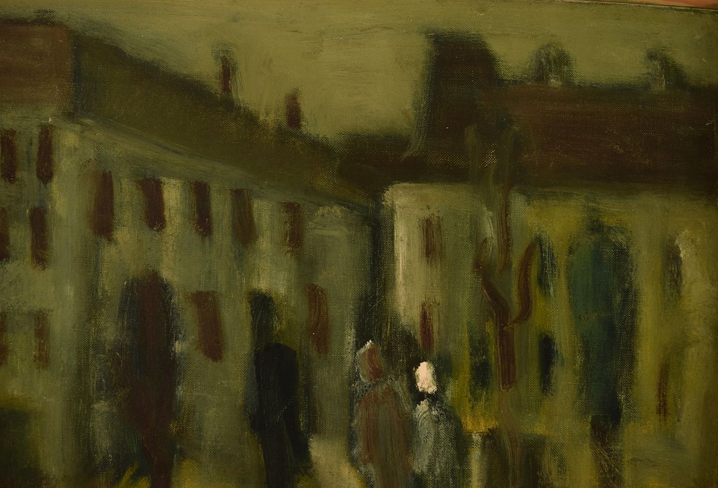 Svend Aage Tauscher (1911-1984), Dansk kunstner. Olie på lærred. Modernistisk bymotiv. Dateret 1965.