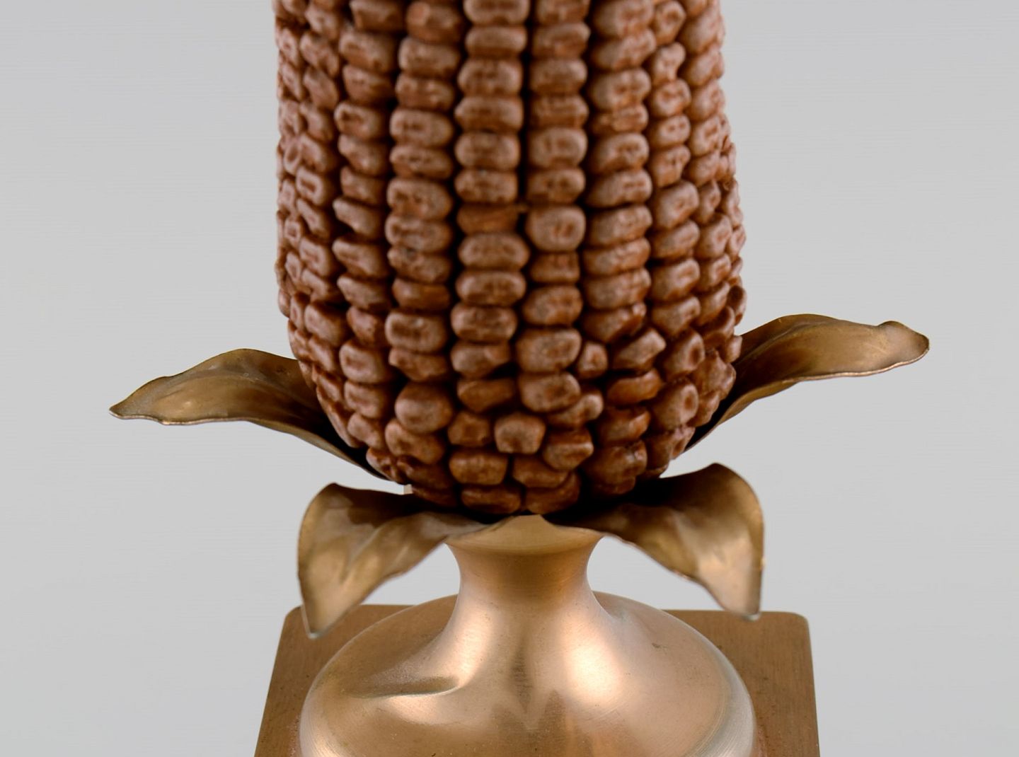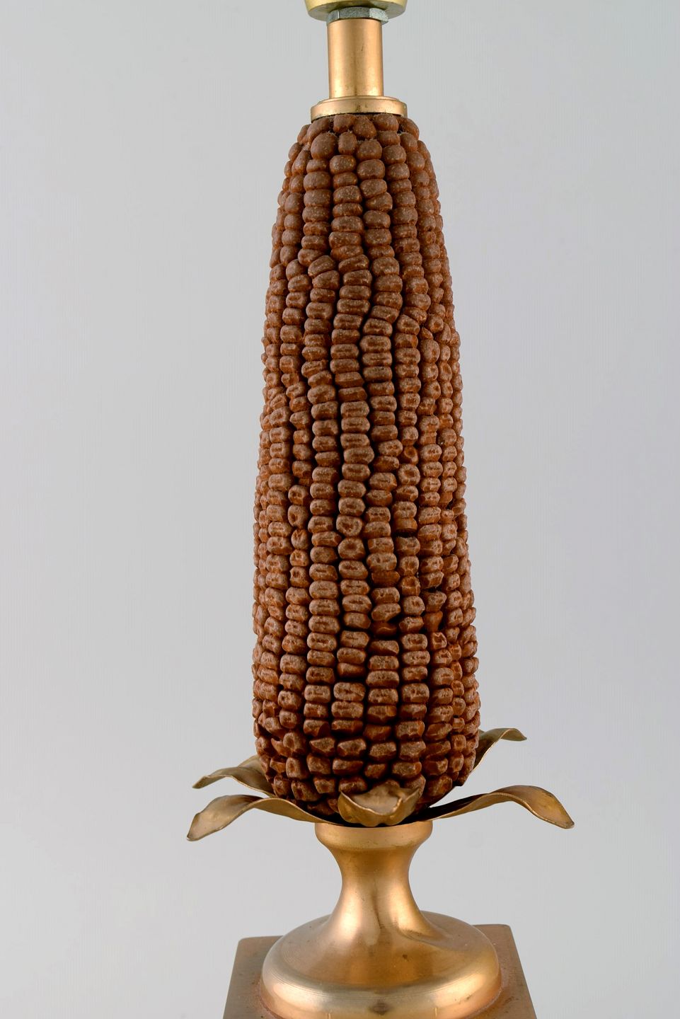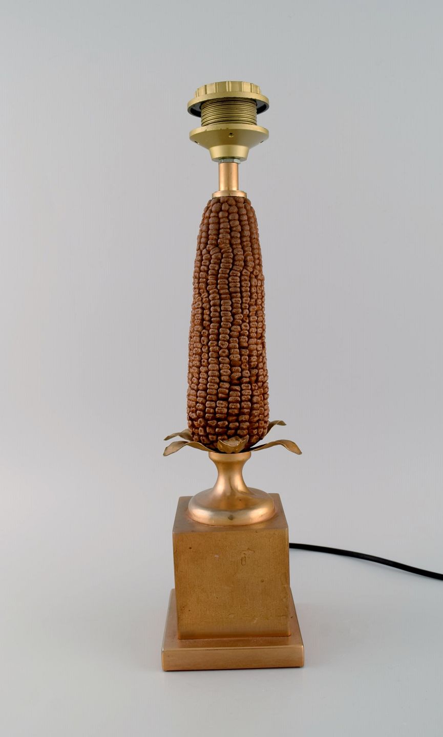 Maison Charles, Frankrig. Bordlampe udformet som majskolbe med fod og blade i messing. 1960/70'erne. Måler: 33 x 10 cm (eks fatning). I flot stand.