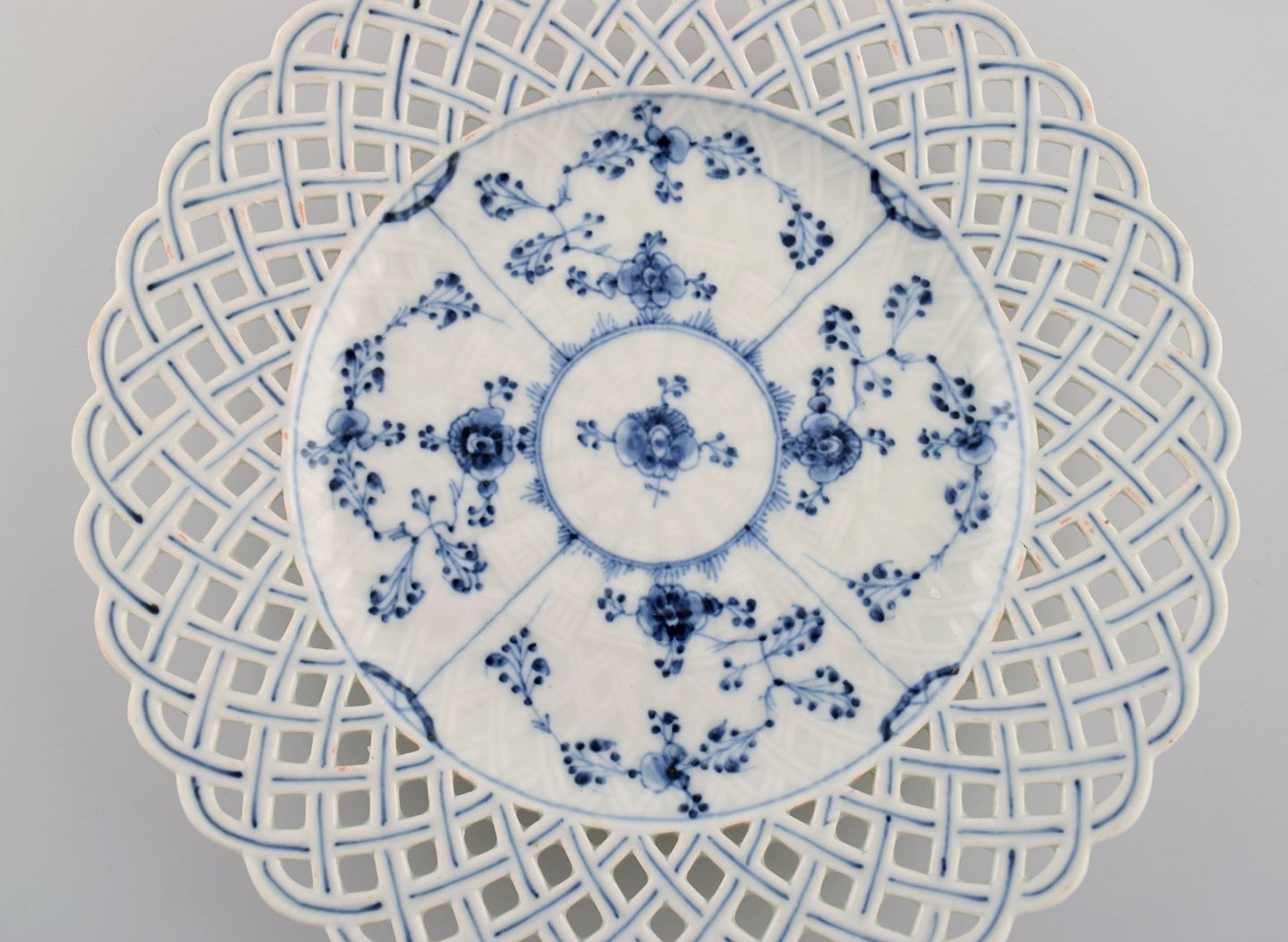 Antik Royal Copenhagen Musselmalet tallerken i gennembrudt porcelæn. 1820'erne. Diameter: 23,5 cm. I flot stand. Stemplet.