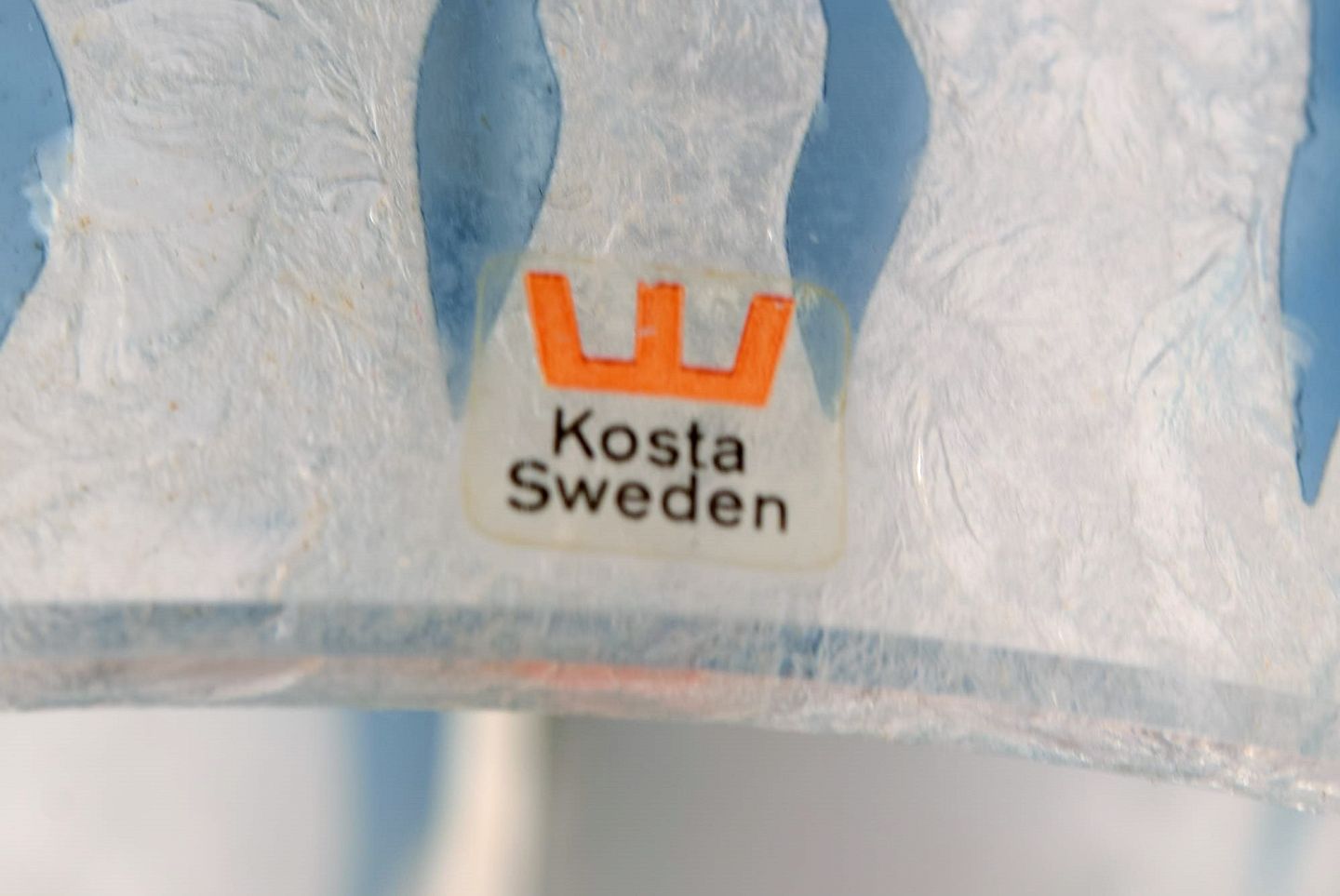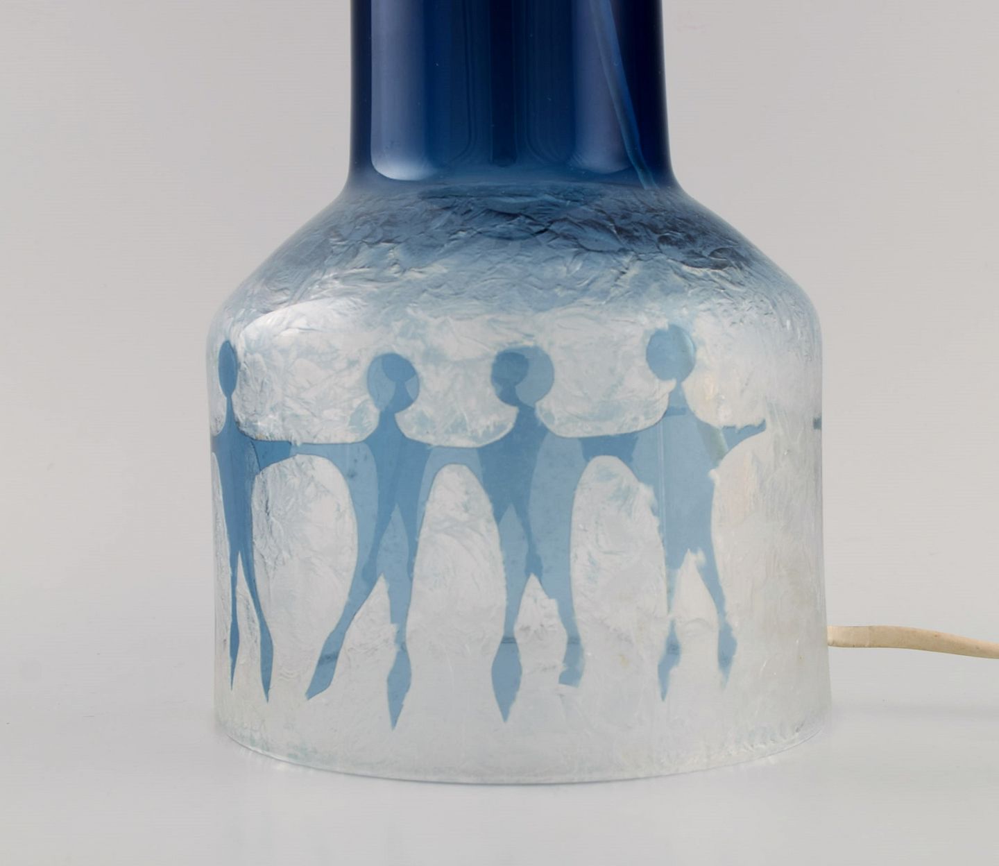 Ove Sandberg for Kosta Boda. To bordlamper i blåt og klart kunstglas dekoreret med personer. 1970'erne. Måler: 29 x 15 cm (eks fatning). I flot stand. Signeret.