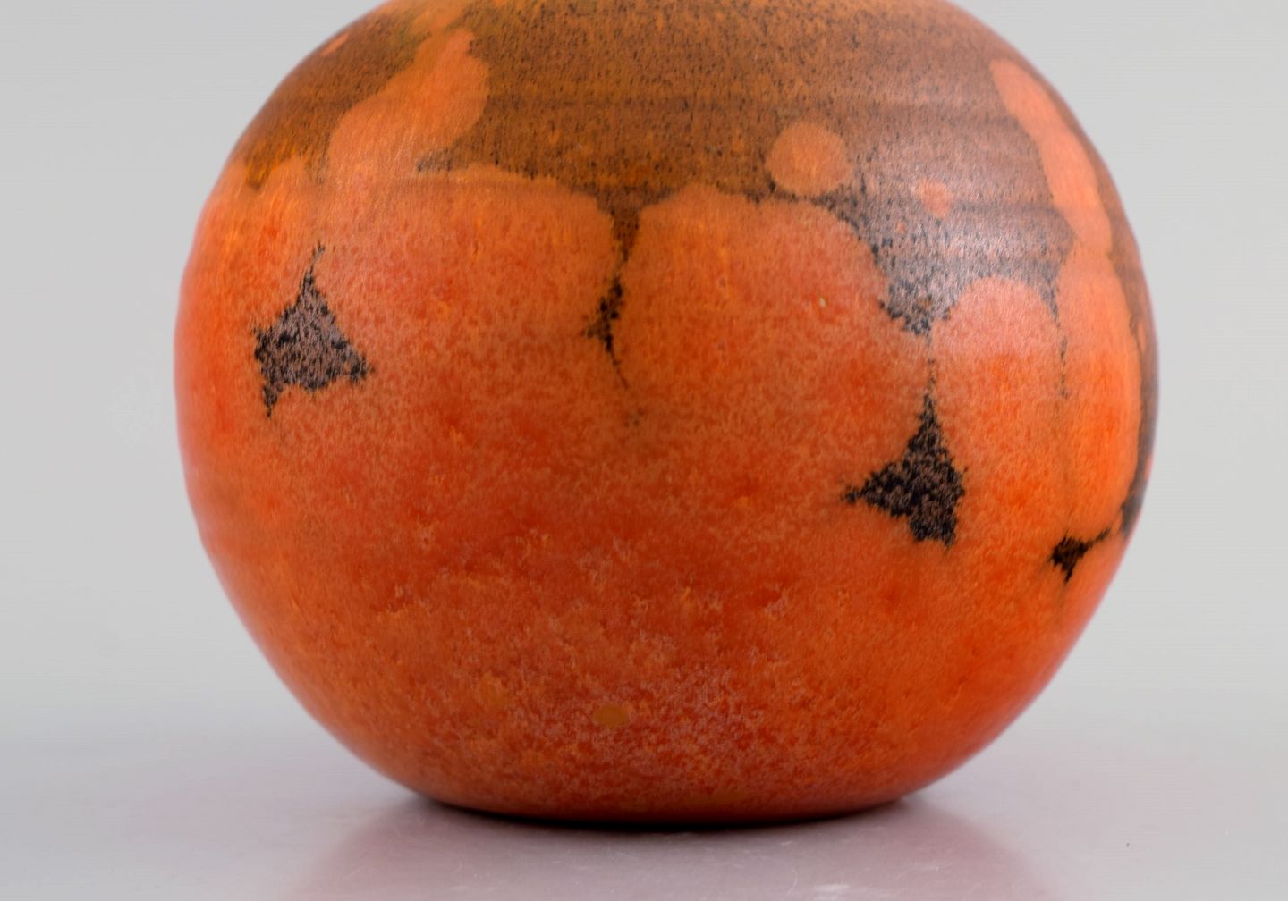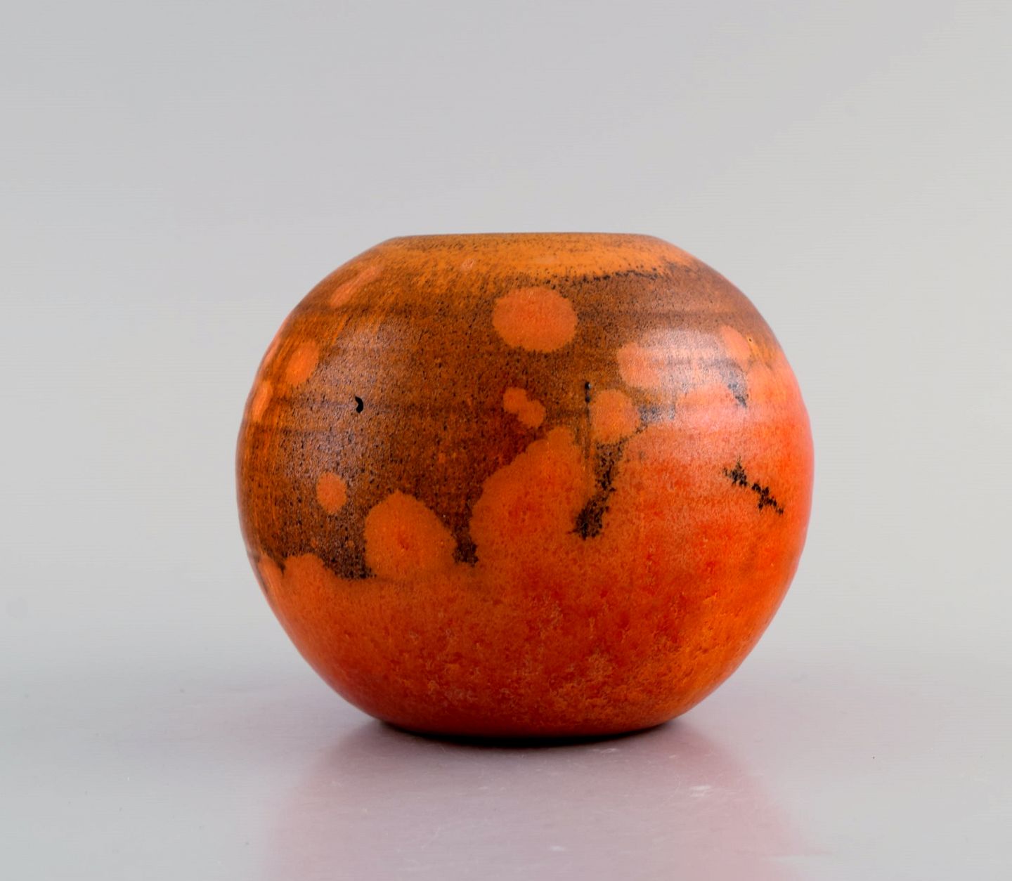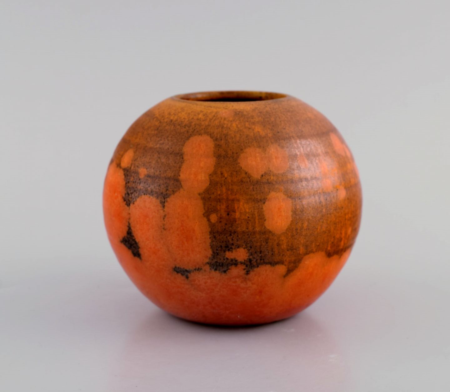 Pieter Groeneveldt (1889-1982), hollandsk keramiker. Rund unika vase i glaseret keramik. Smuk glasur i orange nuancer. Midt 1900-tallet. Måler: 11 x 9 cm. I flot stand. Stemplet.