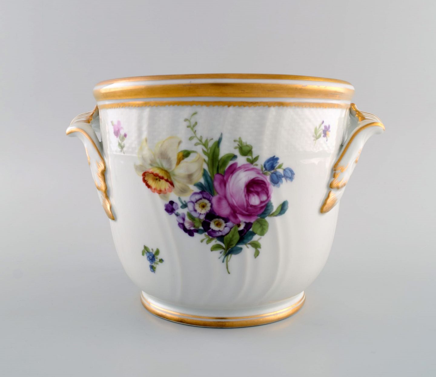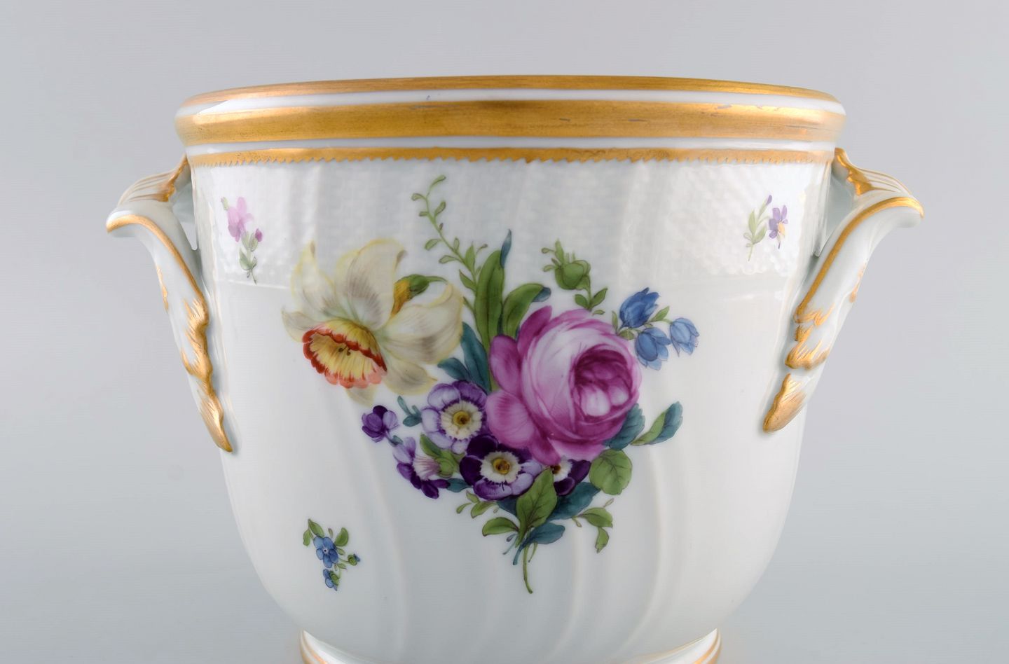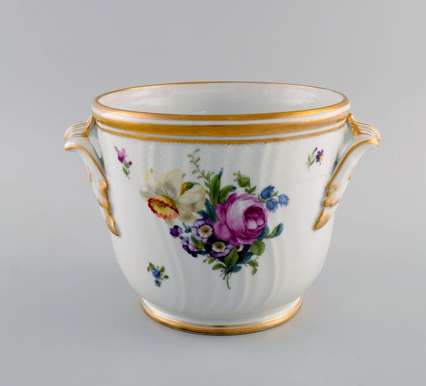 Royal Copenhagen Saksisk Blomst vinkøler i håndmalet porcelæn. Blomster og gulddekoration. Modelnummer 4/1703. Tidligt 1900-tallet. Måler: 24 x 16,5 cm. I flot stand. Stemplet. 1. sortering.