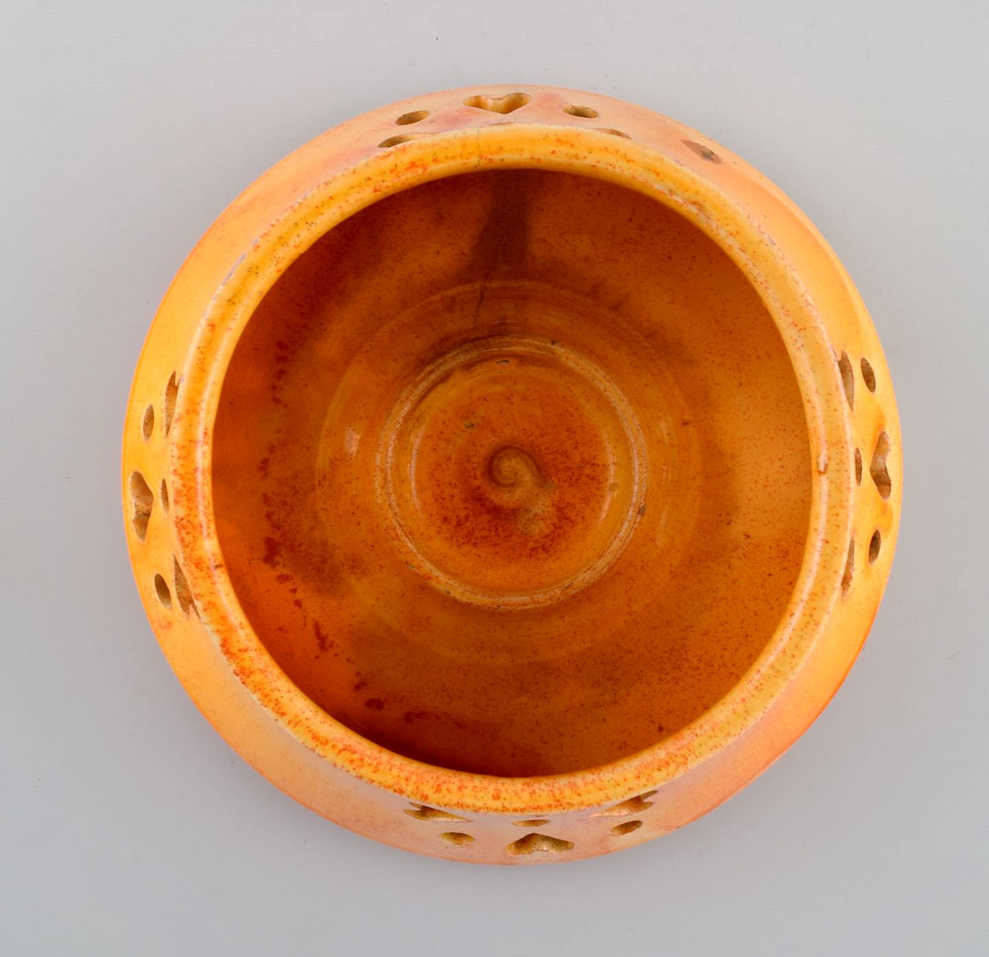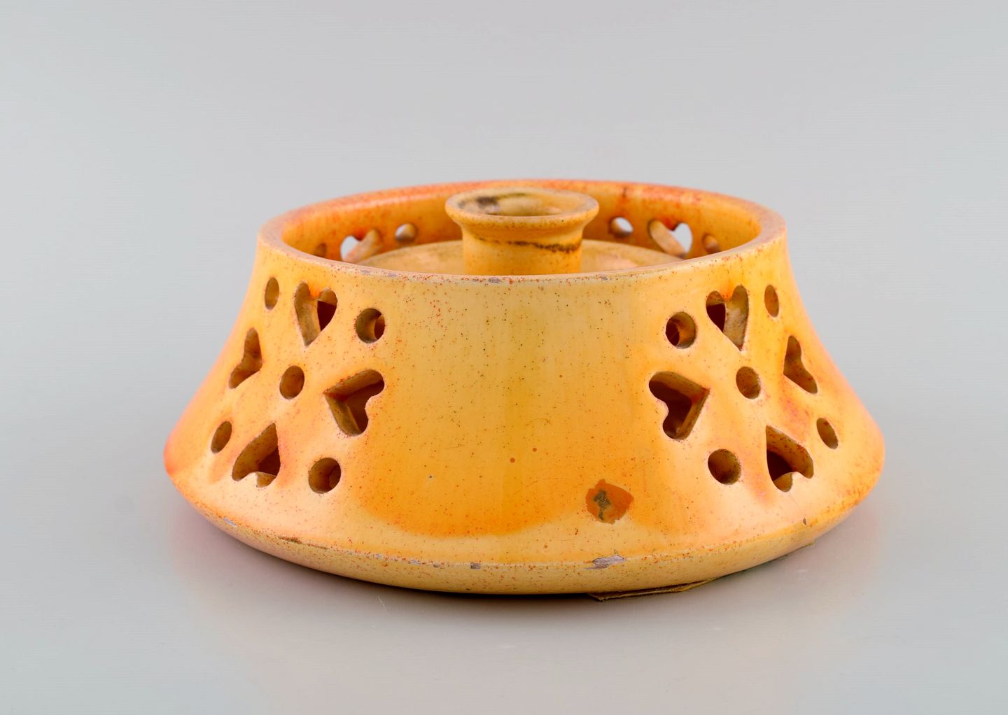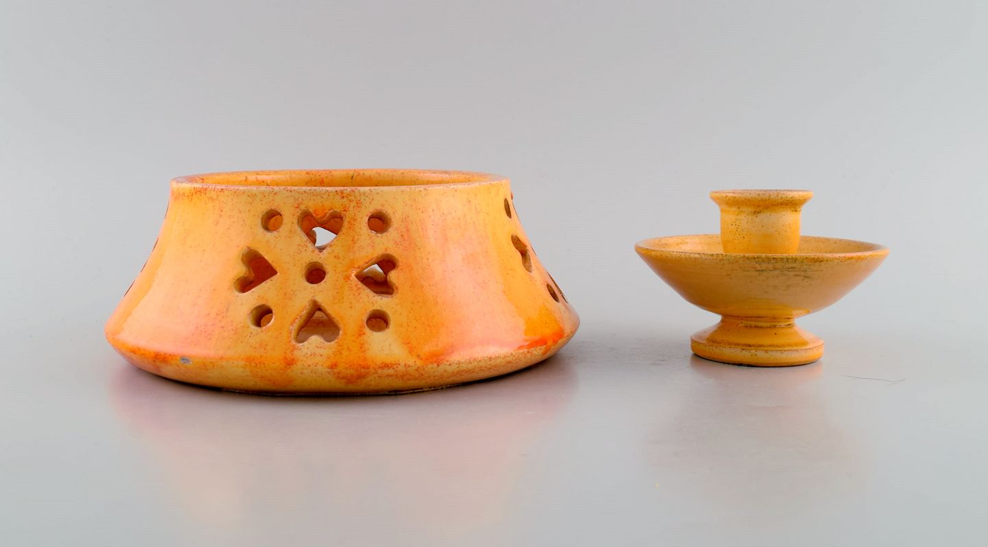 Kähler, Denmark. Candlestick with heater in glazed stoneware. Beautiful orange uranium glaze. Mid-20th century.