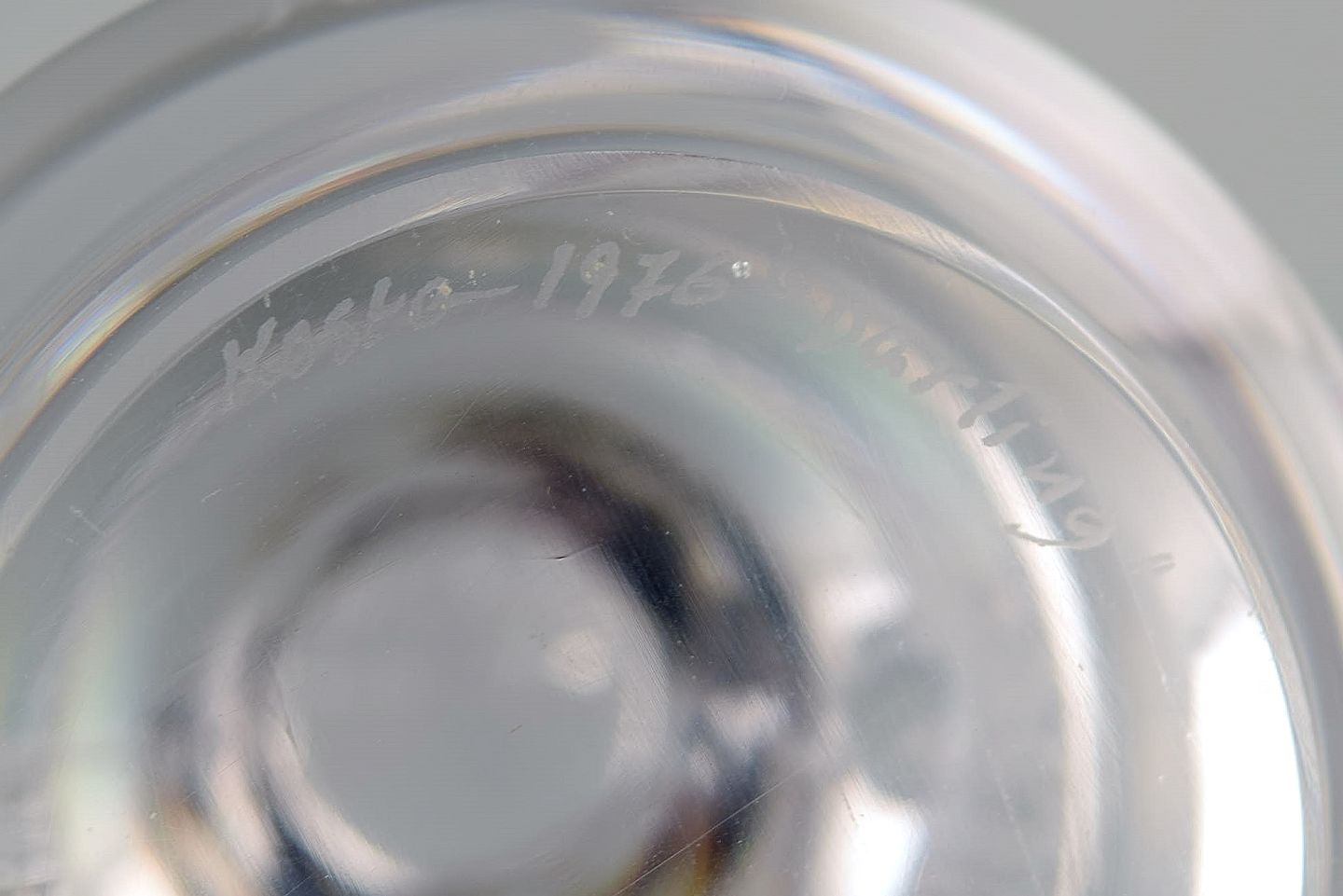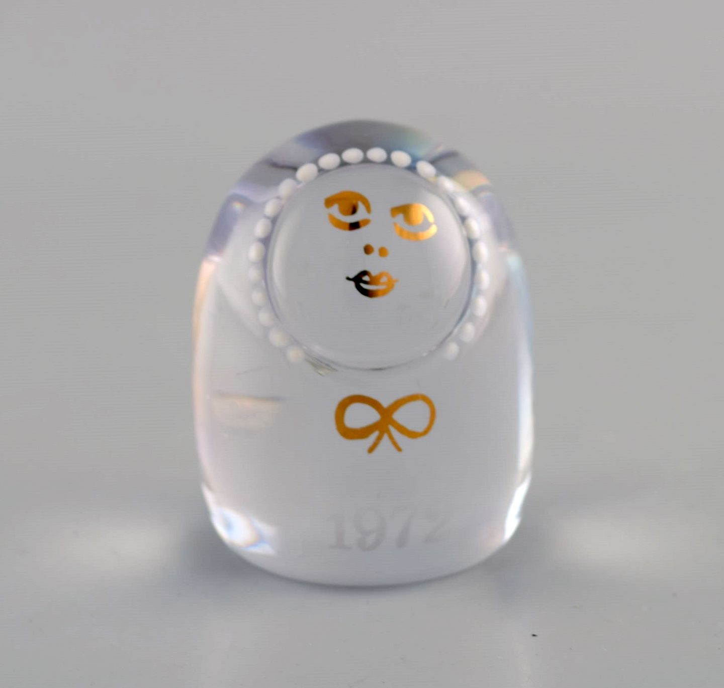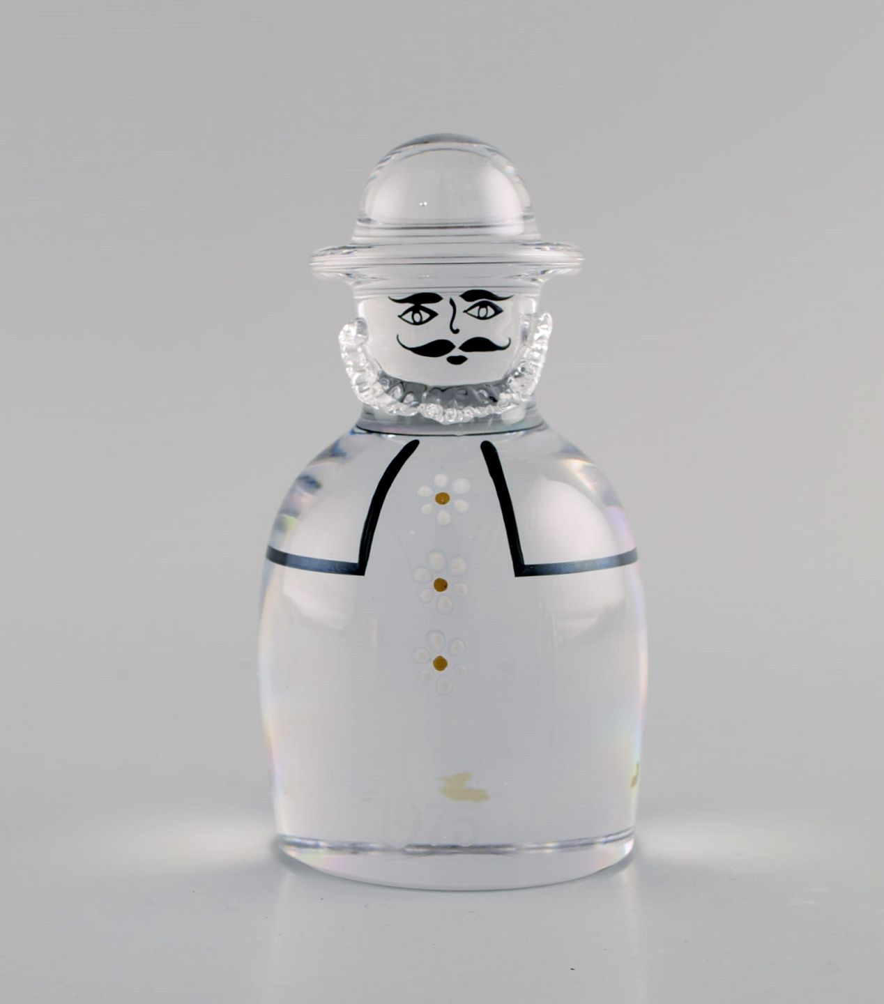 Kosta Boda, Sverige. Tre kunstglas figurer med graveret og håndmalet dekoration. "Familien". 1970'erne. Største måler: 12 x 6,5 cm. Mærket med årstal. I perfekt stand.