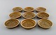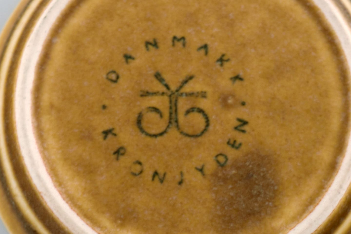 Jens H. Quistgaard (1919-2008) for Bing & Grøndahl / Nissen Kronjyden. 9 Relief skåle / flaskebakker i glaseret stentøj. Smuk glasur i sennepsgule nuancer. 1960'erne.