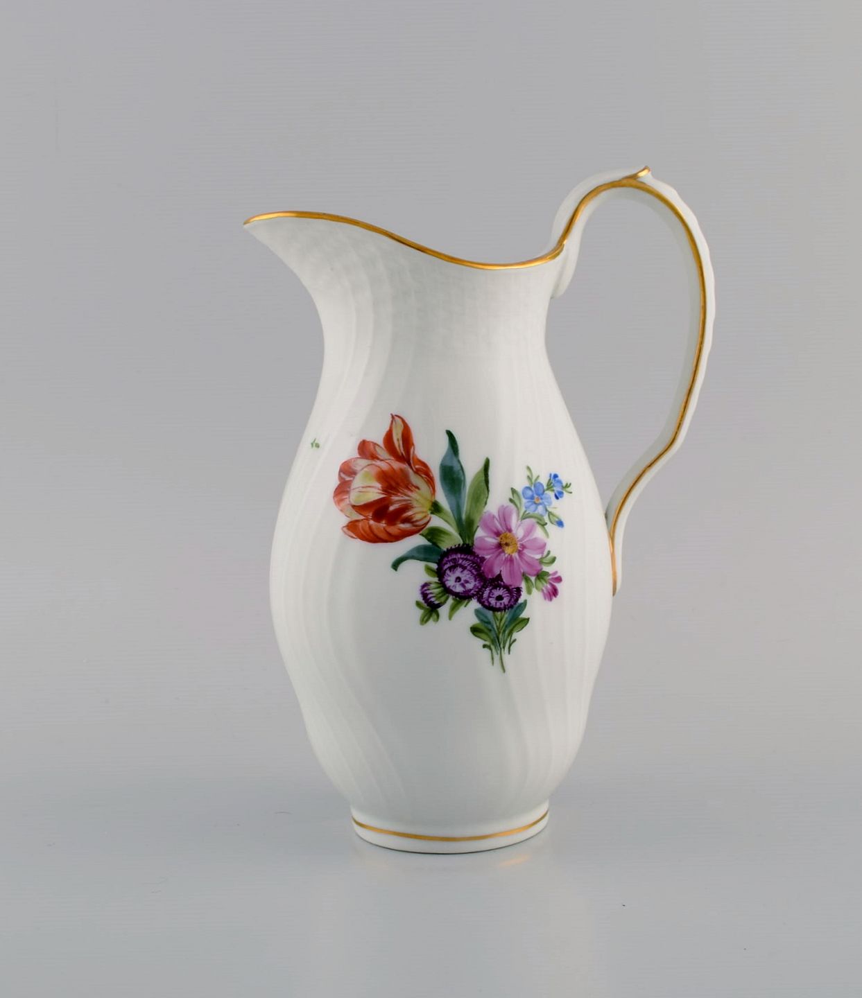 Royal Copenhagen Saksisk Blomst kande i håndmalet porcelæn med blomster og gulddekoration. Modelnummer 493/1609. Tidligt 1900-tallet.