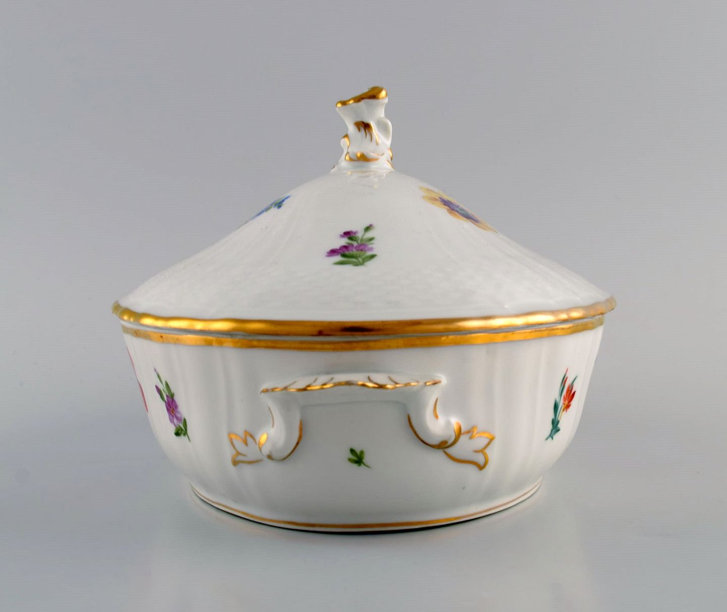 Royal Copenhagen Saksisk Blomst lågterrin i håndmalet porcelæn. Blomster og gulddekoration. Modelnummer 493/1702. Tidligt 1900-tallet. Måler: 27 x 18,5 x 14 cm. I flot stand. Stemplet. 2. sortering.