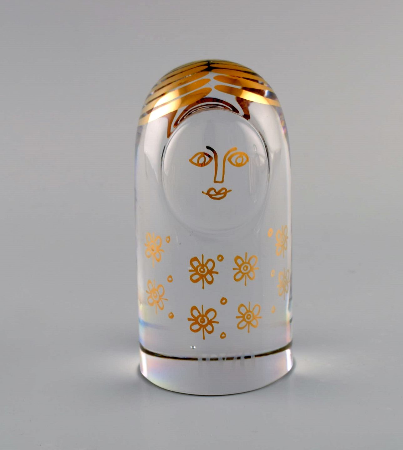 Kosta Boda, Sverige. Fire kunstglas figurer med graveret og håndmalet dekoration. "Familien". 1970'erne.