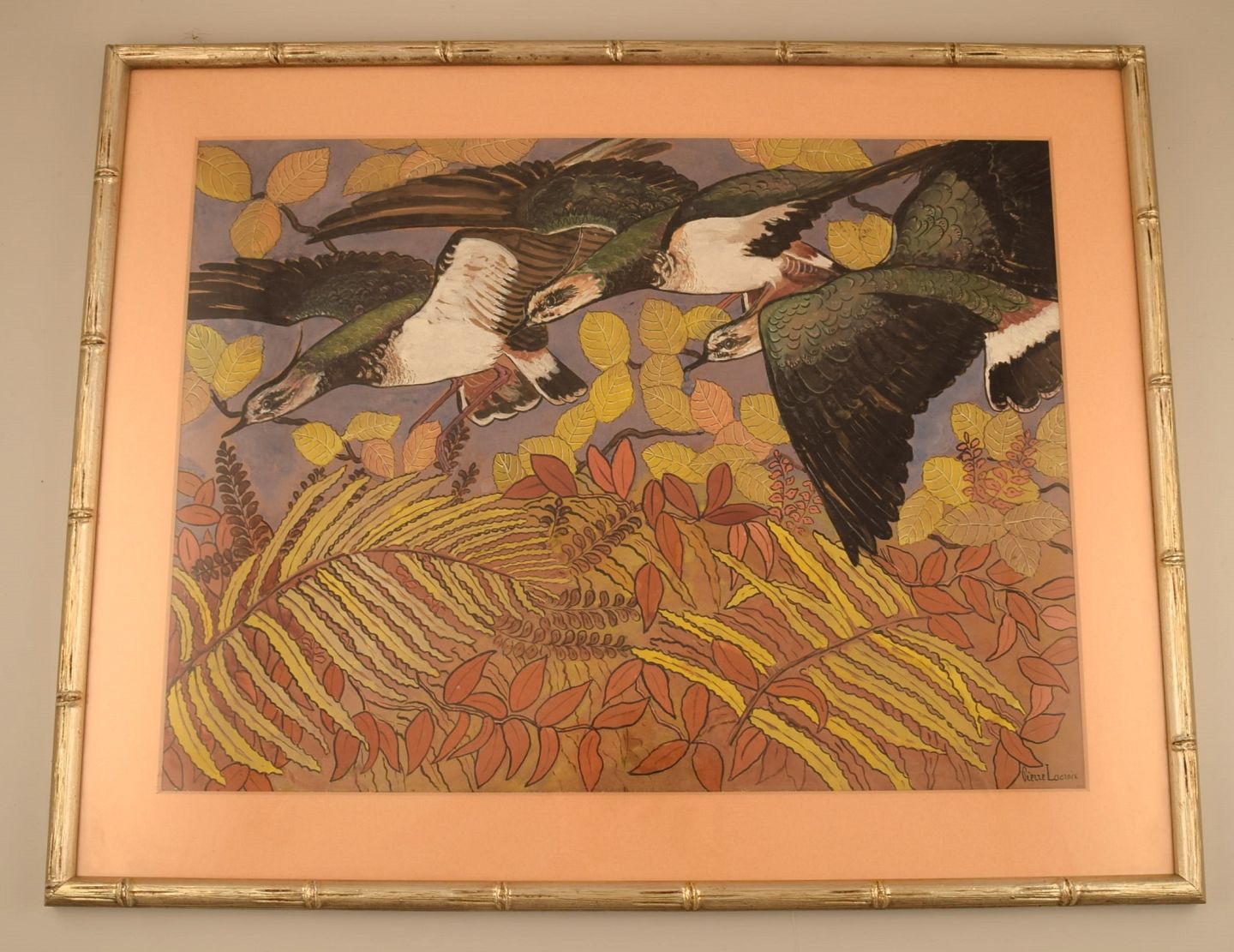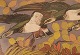 Pierre Lacroix (1912 - 1994), fransk kunstner. Akvarel på papir. Fugle og bladværk. 1960'erne. Lysmål: 64 x 48 cm. Totalmål: 76 x 60 cm. Rammen måler: 2 cm. I flot stand. Signeret.