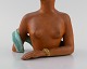 Goldscheider, Østrig. Art deco figur i håndmalet og glaseret keramik. Nøgen kvinde. 1940'erne.