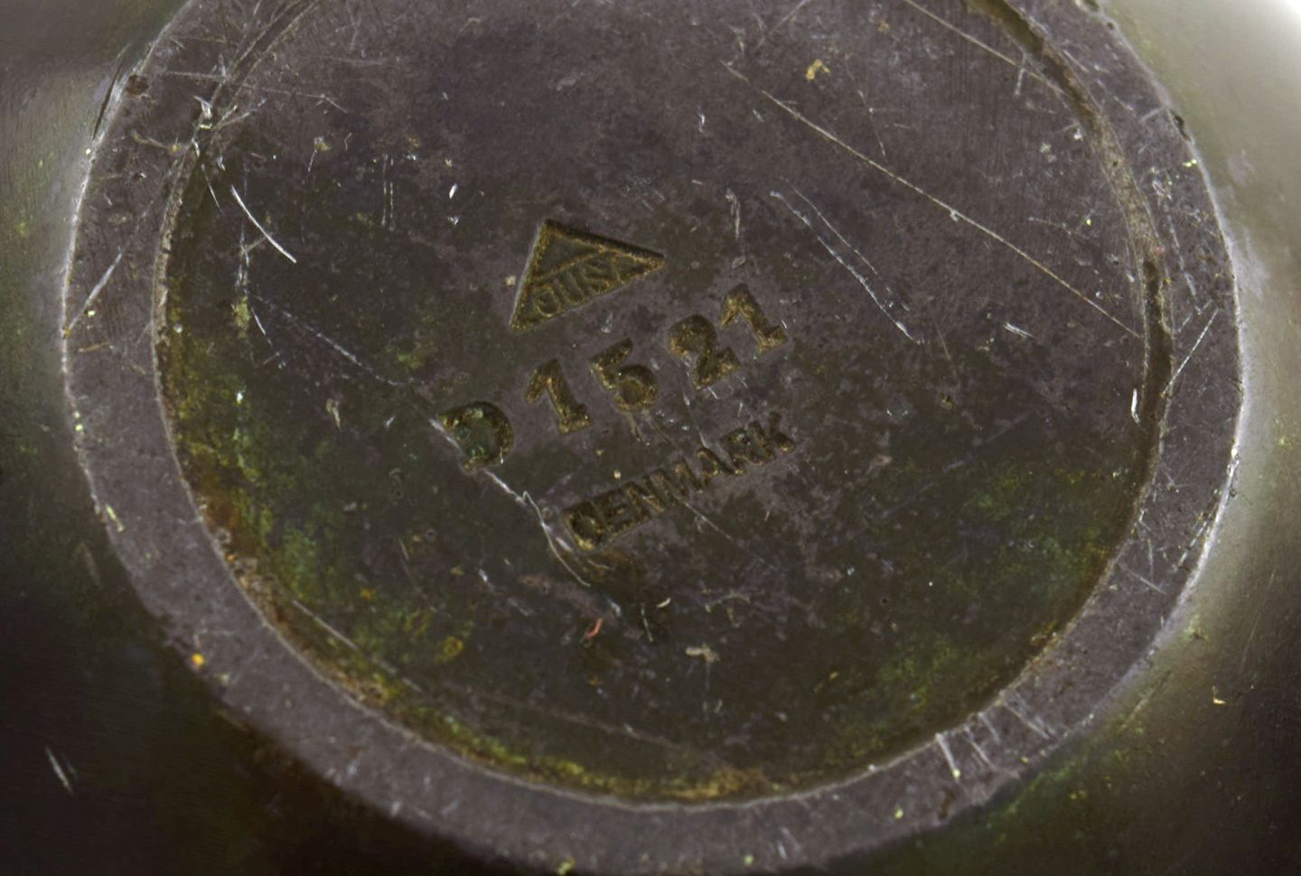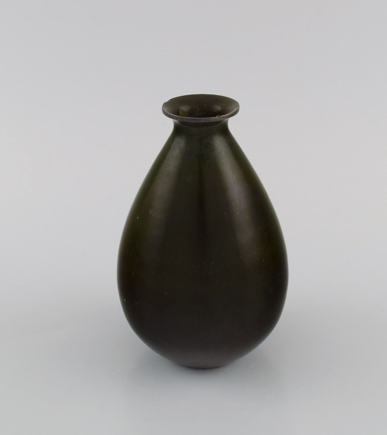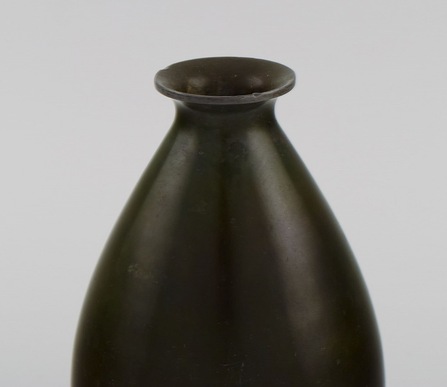 Just Andersen, Danmark. Tidlig vase i diskometal. 1930'erne. Modelnummer D1521. Måler: 14,5 x 9,5 cm. I flot stand med patina. Stemplet.