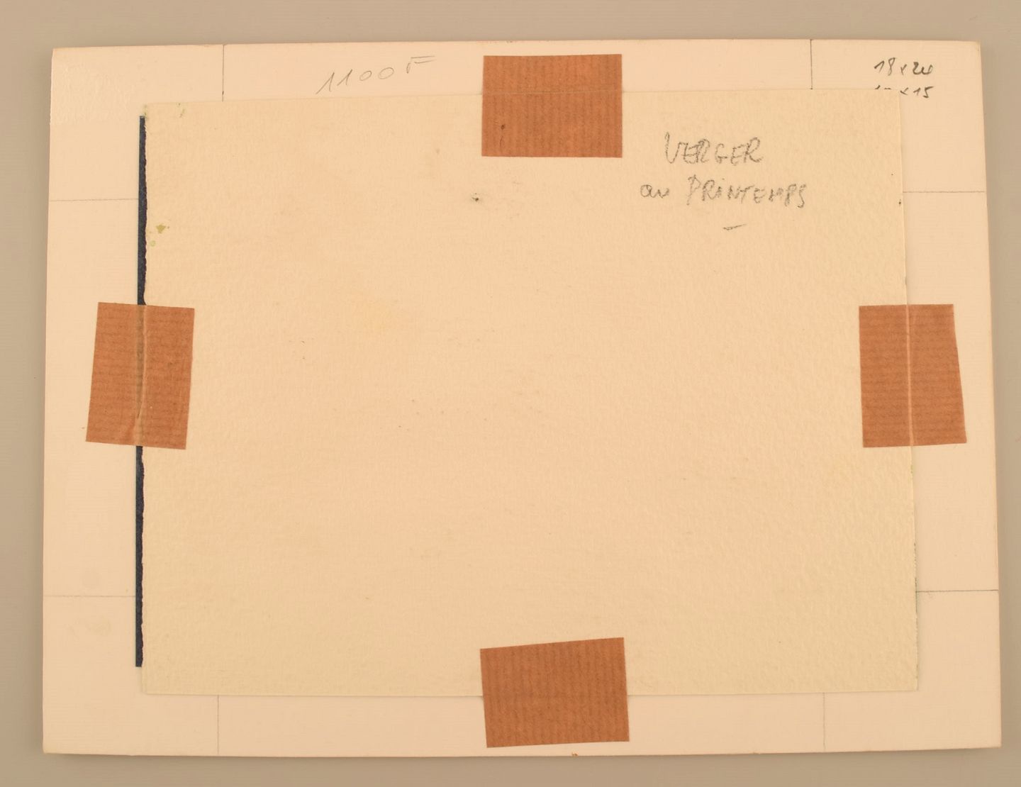 René Leroy (f. 1931), fransk kunstner. Akvarel på papir. 1980'erne. Lysmål: 15 x 10 cm. Totalmål: 24 x 18 cm. I flot stand. Signeret.