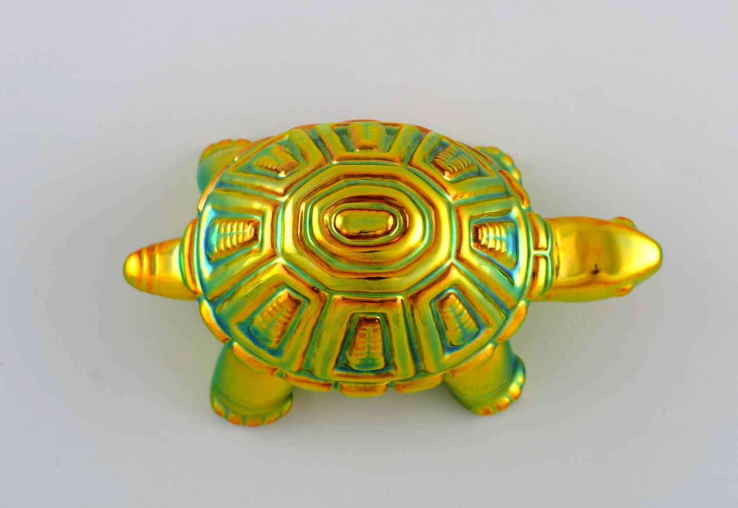 Judit Nádor (1934-2016) for Zsolnay. Skildpadde i glaseret keramik. Smuk eosinglasur. 1970'erne. Mċler: 15 x 8 x 8 cm. I flot stand. Stemplet.