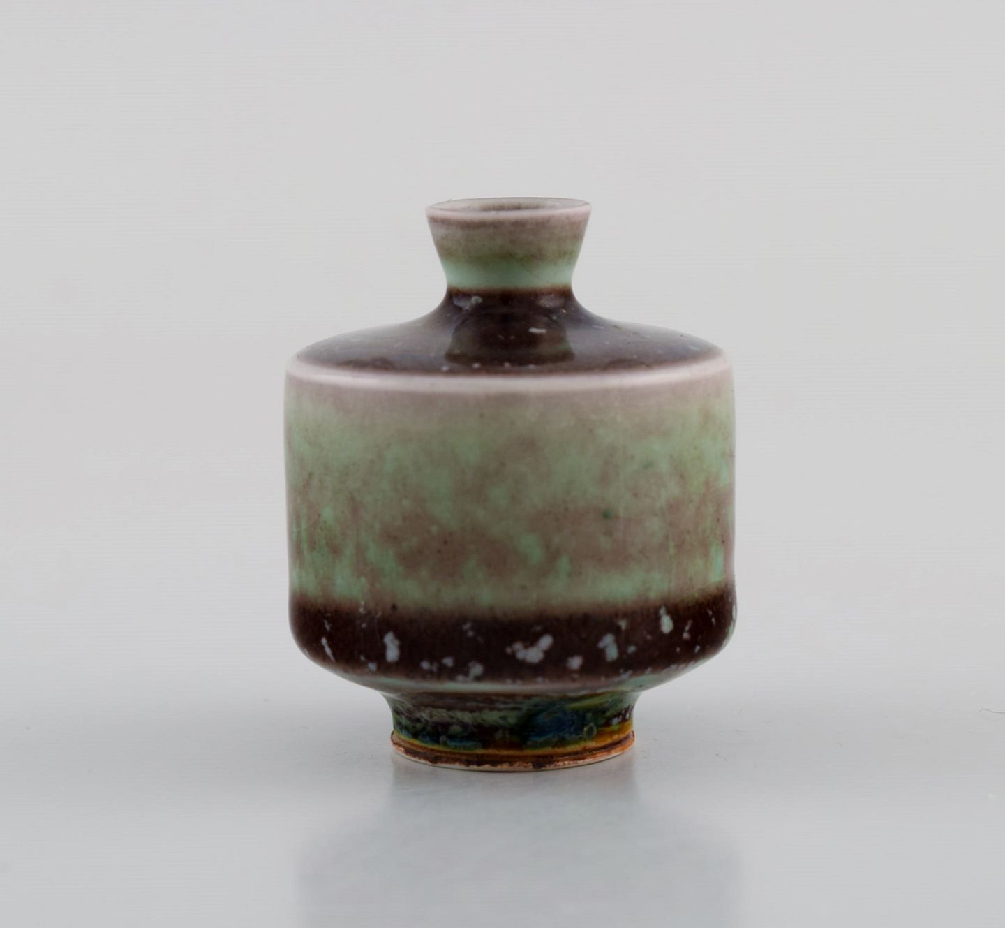Berndt Friberg (1899-1981) for Gustavsberg Studiohand. Miniature vase i glaseret keramik. Smuk Aniara glasur. 1970'erne.