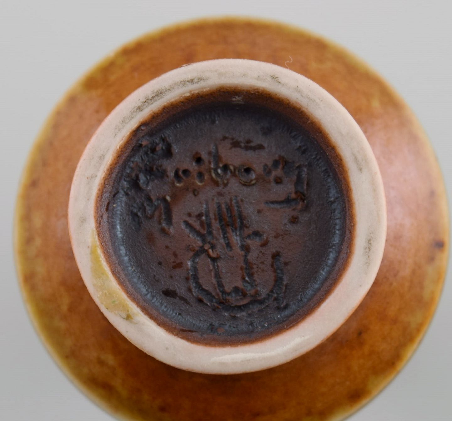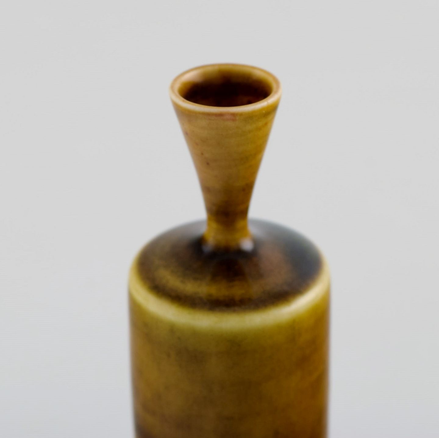 Berndt Friberg (1899-1981) for Gustavsberg Studiohand. Miniature vase i glaseret keramik. Dateret 1971. Måler: 9,5 x 3,5 cm. I flot stand. Signeret.