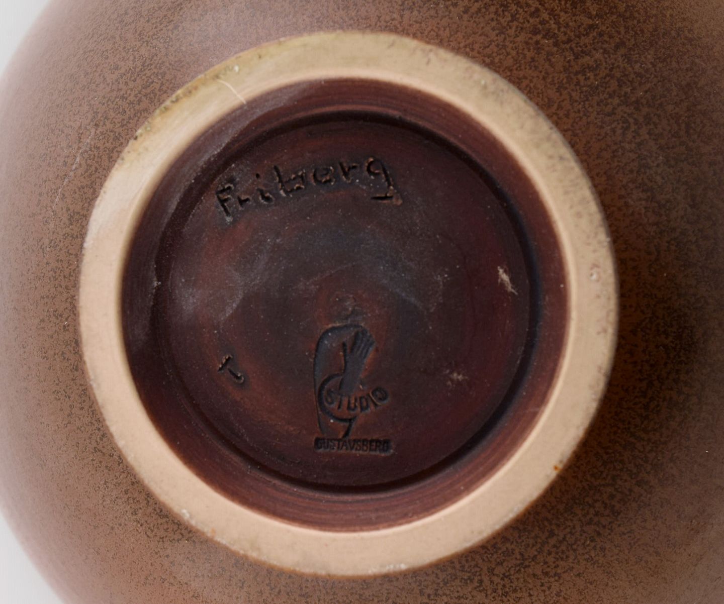 Berndt Friberg (1899-1981) for Gustavsberg Studiohand. Skål i glaseret keramik. Smuk glasur i brune nuancer. Dateret 1950.
