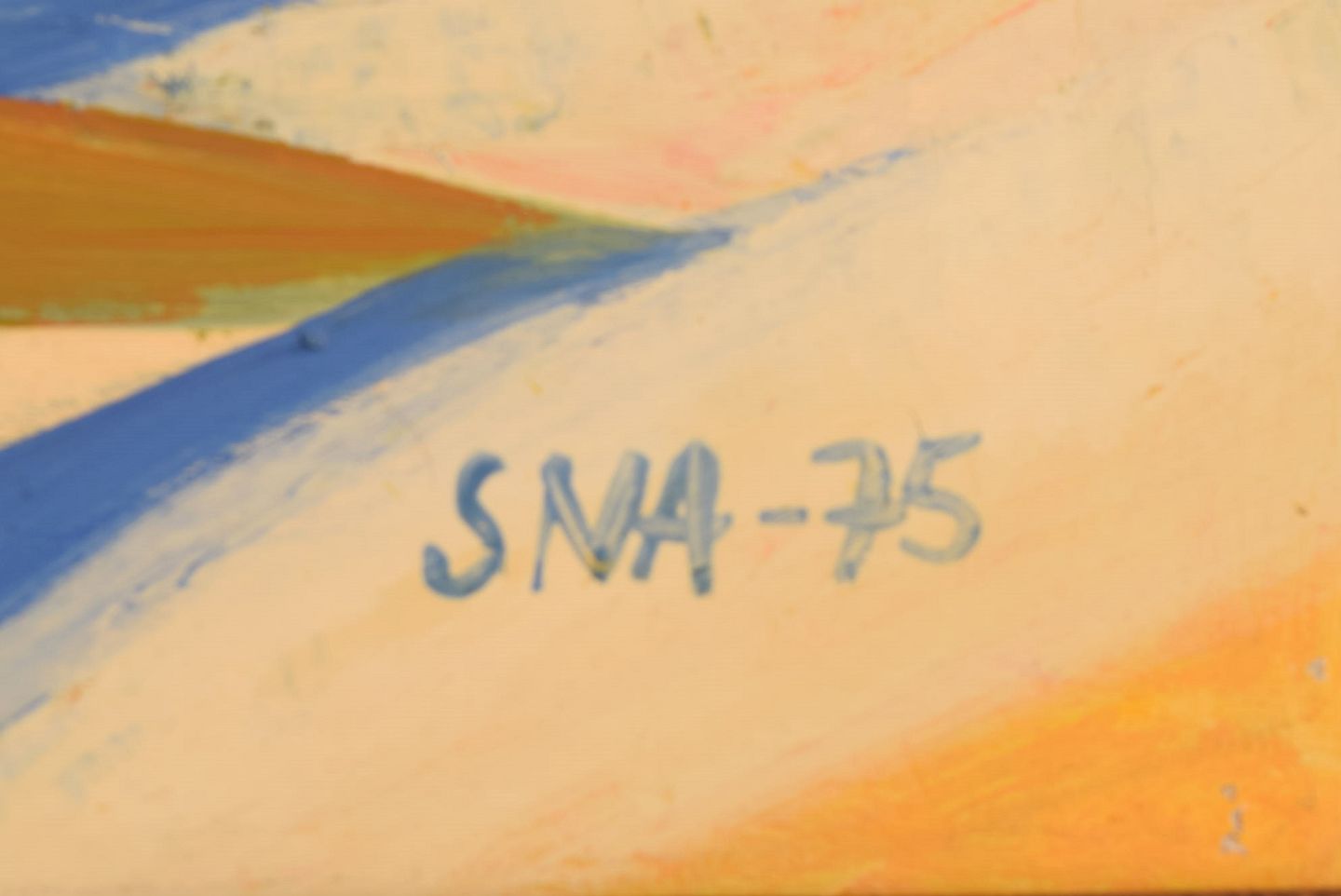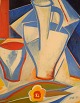 Skandinavisk kunstner. Olie på lærred. Modernistisk stilleben. Dateret 1975. Lærredet måler: 59 x 51 cm. Rammen måler: 6 cm. I flot stand. Signeret og dateret.