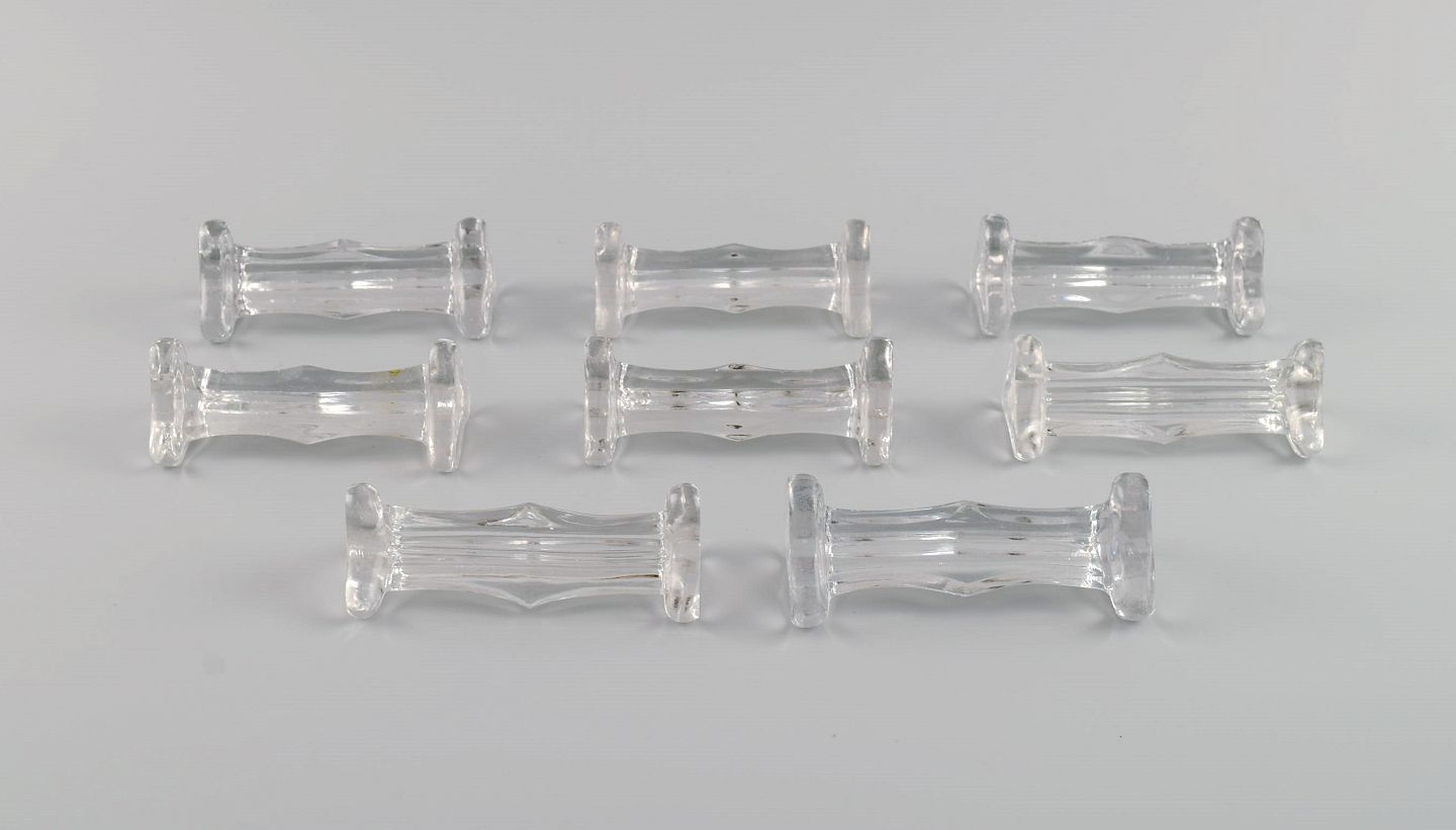 Otte art deco knivblokke i klart kunstglas. Frankrig, 1930/40'erne. Måler: 9 x 3 cm. I flot stand med minimale skår.