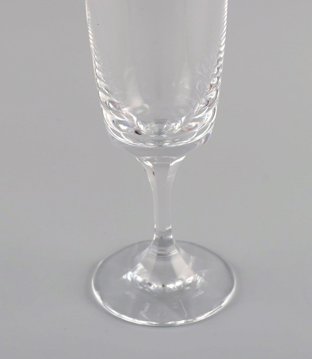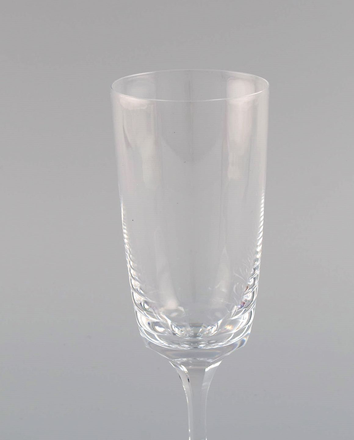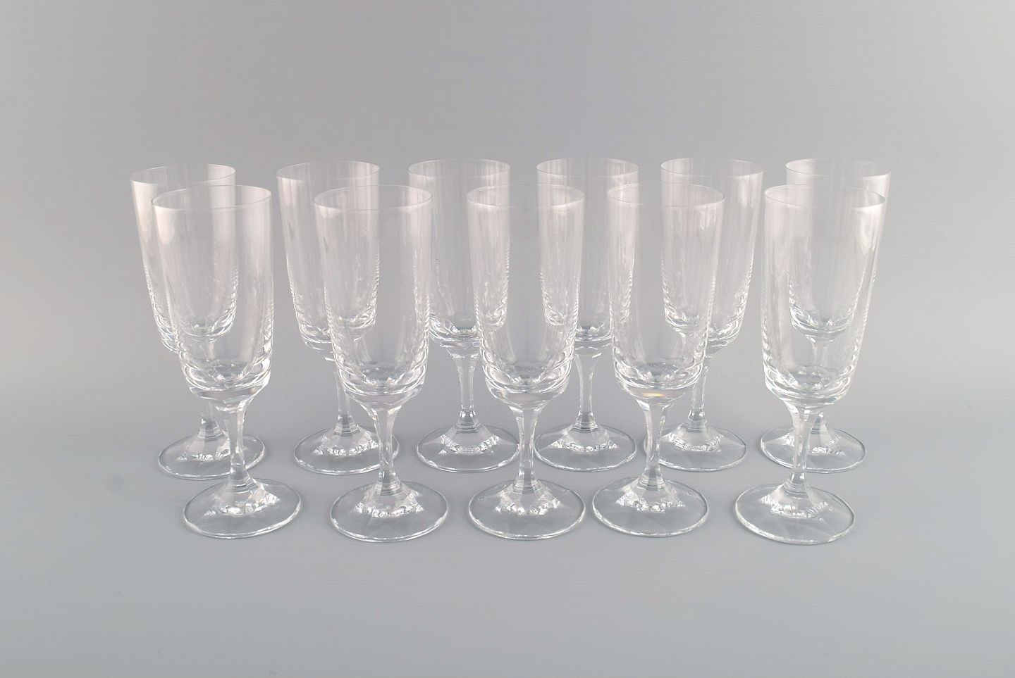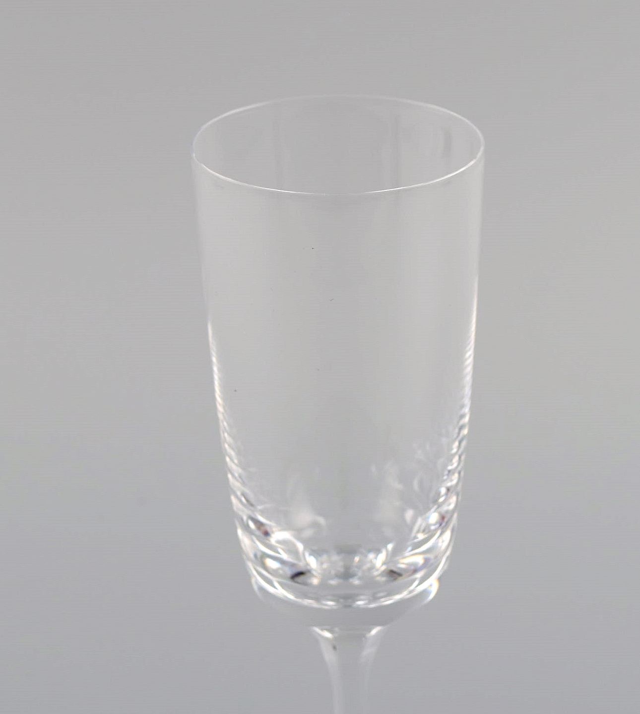 11 René Lalique Chenonceaux champagnefløjter i klart mundblæst krystalglas. Midt 1900-tallet.
