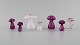 Smålandshyttan, Sverige. Syv svampe i mundblæst kunstglas. Purpur og lyserøde nuancer. 1960/70'erne. Største måler: 7,2 x 6,5 cm. I flot stand. Mærkat.