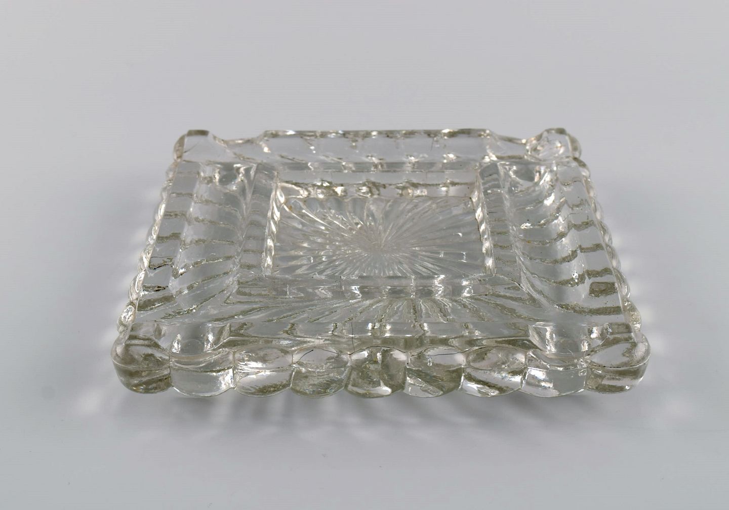 Baccarat, Frankrig. Kvadratisk art deco skål / fad i klart kunstglas. 1930/40'erne. Måler: 17 x 17 x 3 cm. I flot stand.
