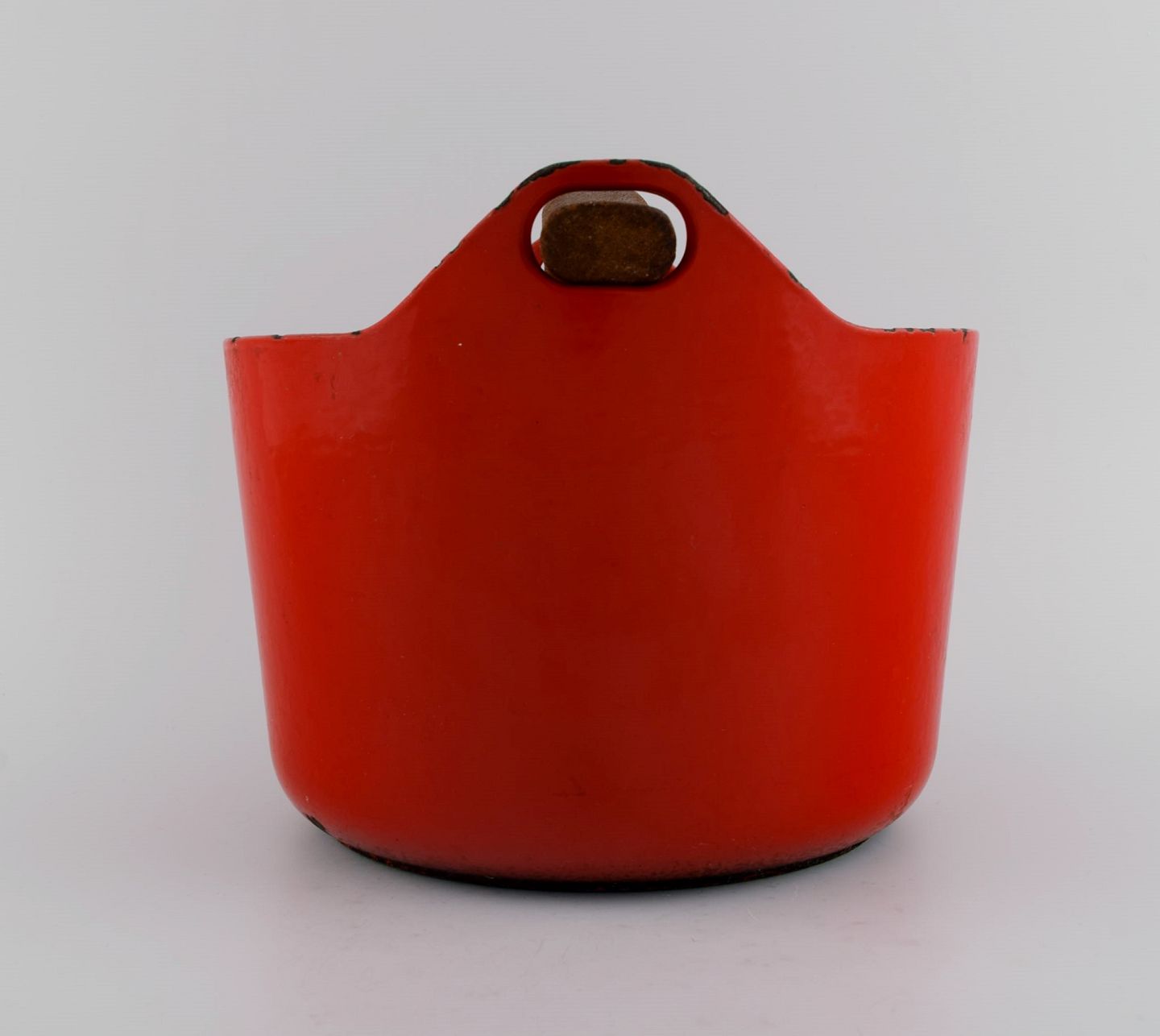 Timo Sarpaneva for Rosenlew, Finland. Støbejernsgryde i rød emalje med hank i træ. Midt 1900-tallet.